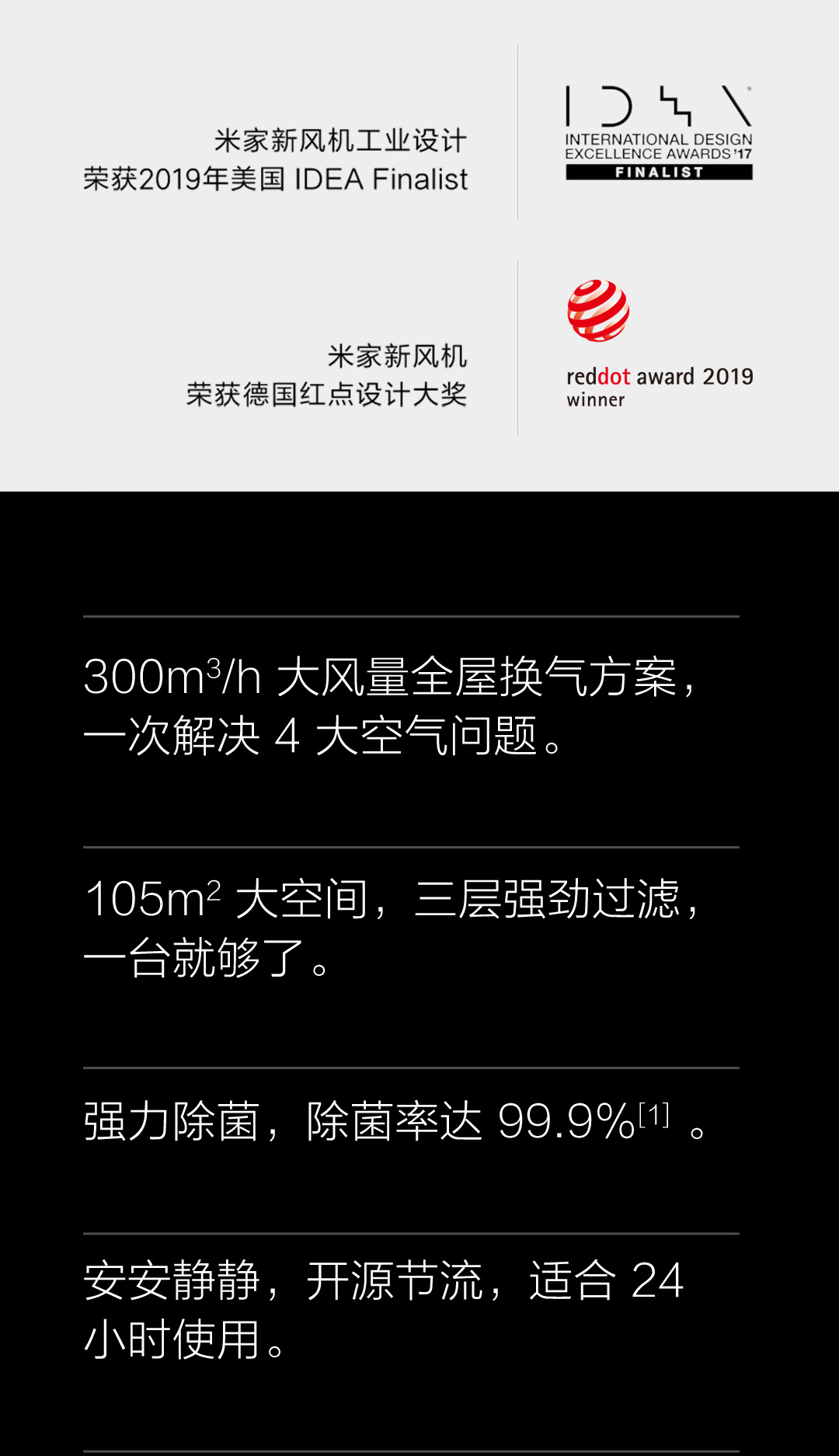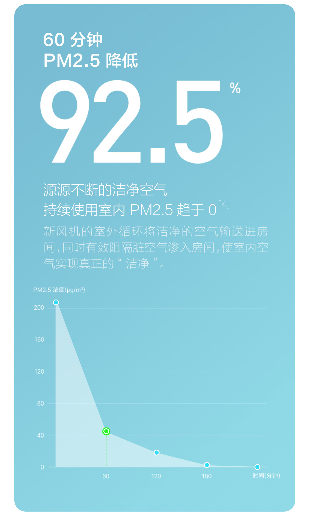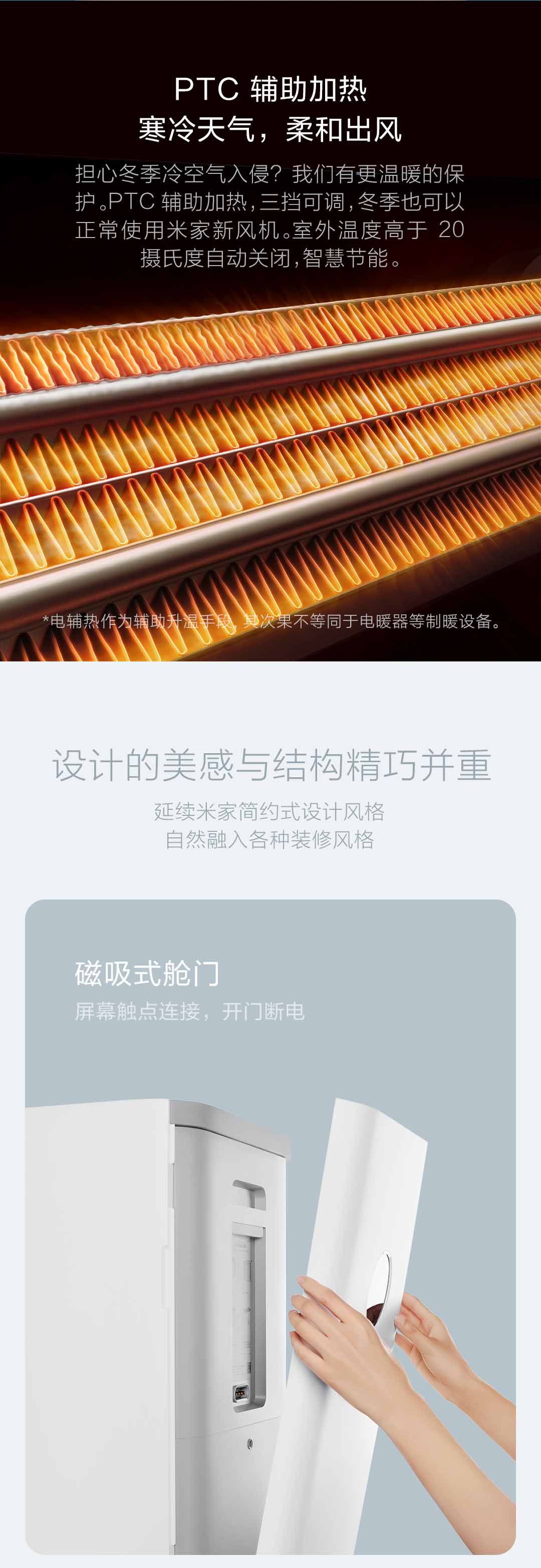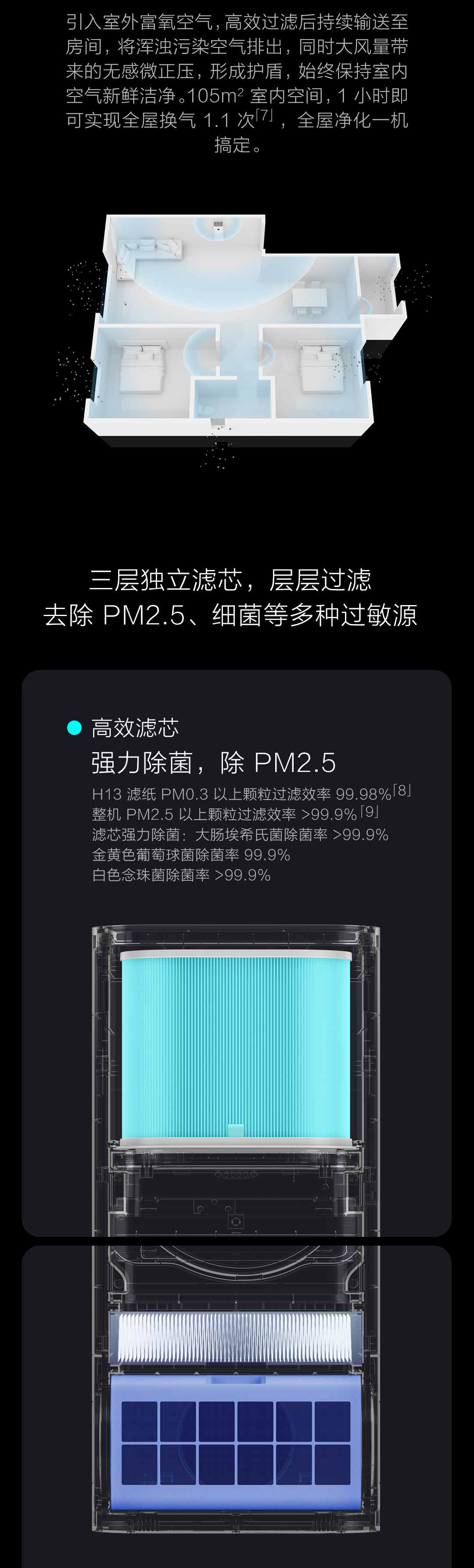 Название продукта: Mijia Fresh air system Модель продукта: MJXFJ-300-G1 Размер продукта: 970 × 365 × 230 мм Вес нетто: около 16 кг (включая фильтрующий элемент) Номинальный объем воздуха: 300 м³ / ч Область применения: ≤105㎡ Номинальное напряжение: 220 В Номинальная частота: 50 Гц Номинальная мощность: 35 Вт Мощность вспомогательного отопления: 800 Вт Уровень шума: ≤36 дБ (A) (режим ожидания 20,4 дБ (A)) Беспроводное соединение: Wi-Fi IEEE 802.11b / g / n 2.4G