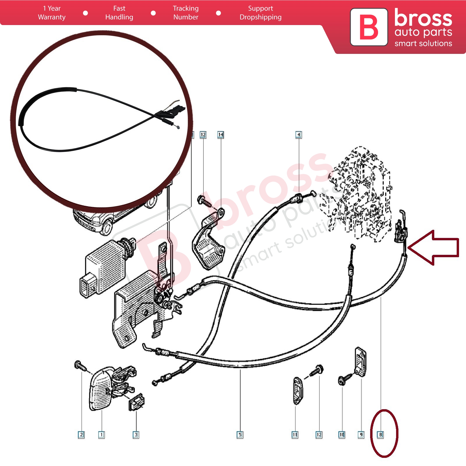 Наш код SKU:BDP670Внутренняя дверная защелка Боуден кабель 8200516256 для Renault Kangoo Laguna MK1