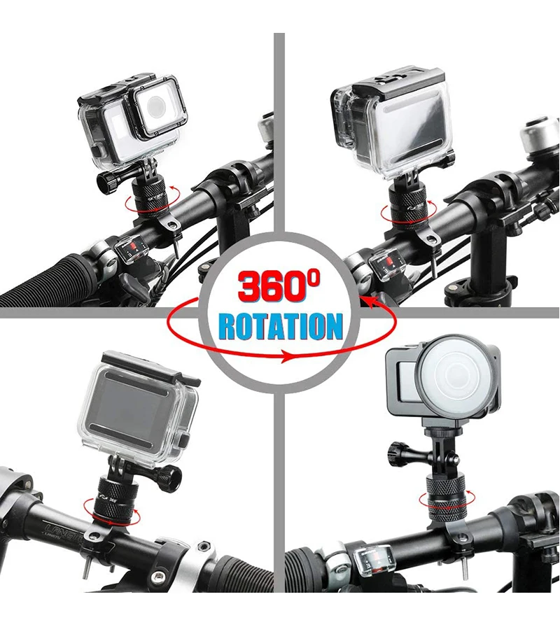 Поворотная камера с креплением на руль велосипеда обеспечивает вращение на 360 градусов для съемки под разными углами, соответствует всем требованиям к съемке.