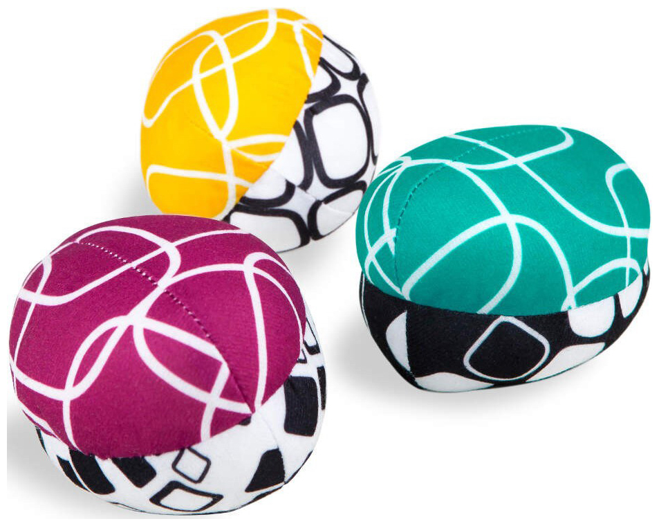 Интерактивные игрушки: 3 шт., двусторонние, из ткани, включают в себя зеркальце, шуршащие элементы и погремушку