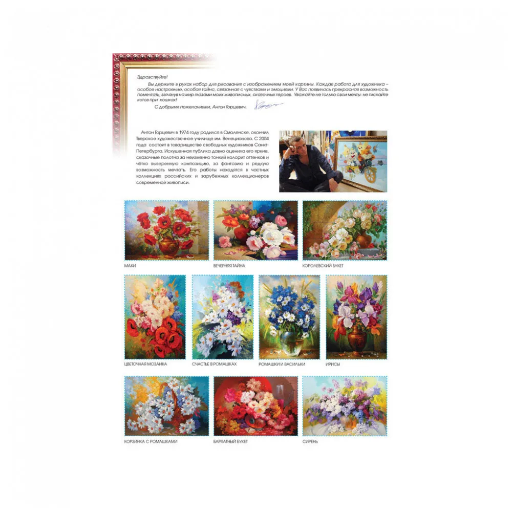Представляем новую линейку товаров для творчества ТМ Белоснежка – живопись по номерам на картоне. Все наборы являются авторскими, разработанными по картинам современных художников, сотрудничающих с нашей компанией. Набор картин по номерам комплектуется акриловыми красками на водной основе, которые не имеют запаха и экологически безопасны. В качестве основы используется толстый картон 29,5*39,5 см, толщиной 2 мм, на который нанесена схема картины с номерами.