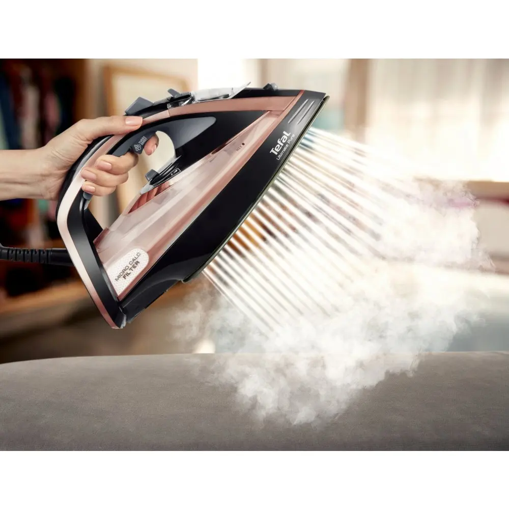 Утюг Tefal FV9845E0 создает невероятно мощный пар для максимальной эффективности глажения и премиального ухода за вещами. Инновационная система фильтрации Micro-Calc Filter обеспечивает на 100% чистый пар и предотвращает попадание частичек накипи или пятен от нее на ткани. Мощность 3200 Вт обеспечивает быстрый нагрев и регулируемый постоянный пар до 60 г/мин для высокоэффективного глажения. Паровой удар 260 г/мин поможет разгладить самые стойкие складки. Утюг оснащен самой скользящей подошвой от Tefal – Durilium AirGlide Autoclean, которая не требует особого ухода. Все продуманные функции и характеристики утюга обеспечивают максимальный комфорт использования. Откройте для себя настоящую силу пара.