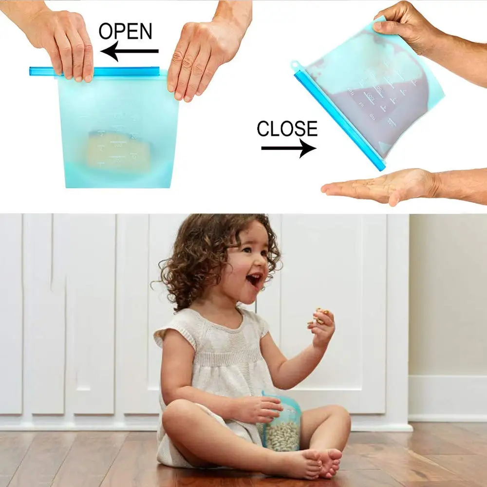 1000 мл 1500 мл силиконовый мешок для хранения Многоразовые силиконовые пакеты для хранения продуктов для пищевых уплотнений Ziplock морозильная камера для приготовления пищи свежие пакеты