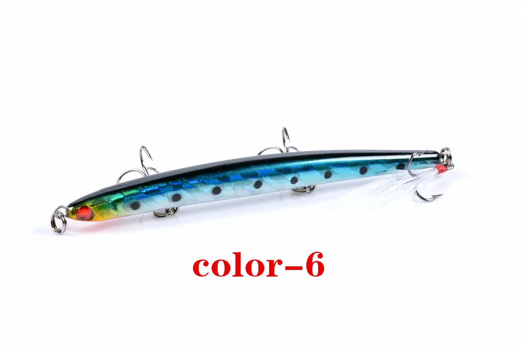 Цвет изделия: 8 Разных Цветов Длина изделия: 11,7 см Вес продукта: 11,8 г Материал изделия: АБС-пластик высокого качества Размер рыболовного крючка: 6 # рыболовный крючок Конфигурация продукта: две улучшенные версии двойного круга, в двух трех крючках из высокоуглеродистой стали Тип погружения: поверхностная система/погружная система Особенности: Товар доступен в 8 различных цветах. Тело рыбы длиной до карандаша может лучше ловить рыбу в воде. Реалистичные 3D глаза и тело рыбы лучше привлекают рыбу в воде, надевая два крючка из высокоуглеродистой стали с колючими перьями, может помочь любителям рыбалки лучше выполнять рыболовные задачи Добро пожаловать новым и старым клиентам, чтобы купить