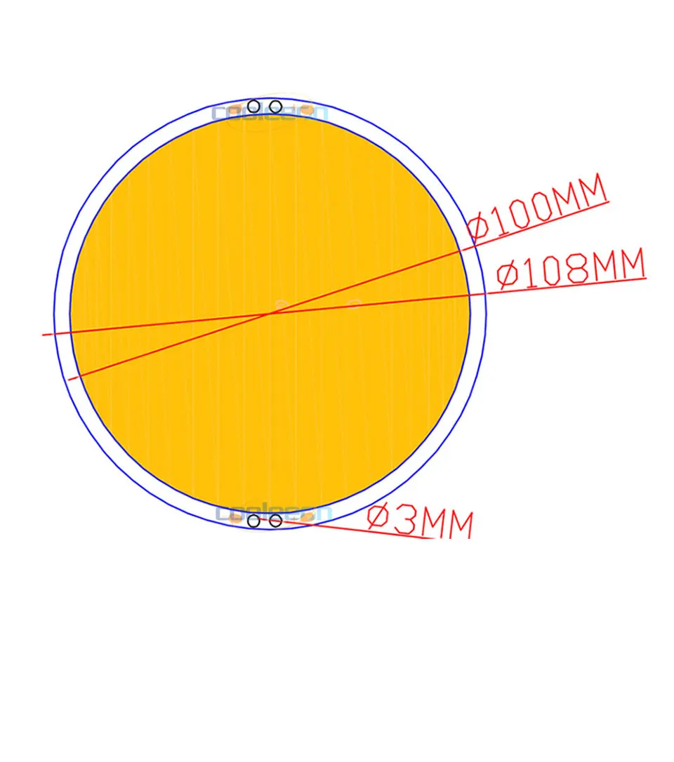Диаметр изделия: 108 мм (4,25 дюйма) Диаметр освещения: 100 мм (3,93 дюйма) Ватт: 50 Вт Votage: DC 12V - 14VMax Ток: 3ARa: >70% Люмен: >110 лм/Вт Цвета излучения: теплый белый (3000K), холодный белый (6500K), синий водонепроницаемый: Да Материал: алюминий + светодиодный чип + силиконовая резина Применимо: Автомобильный DRL светильник, автомобильная лампа, Рабочая лампа, настольная лампа, Домашний Светильник ing, другой светодиодный светильник