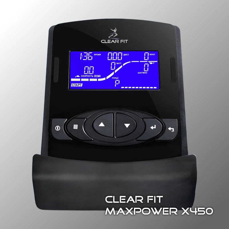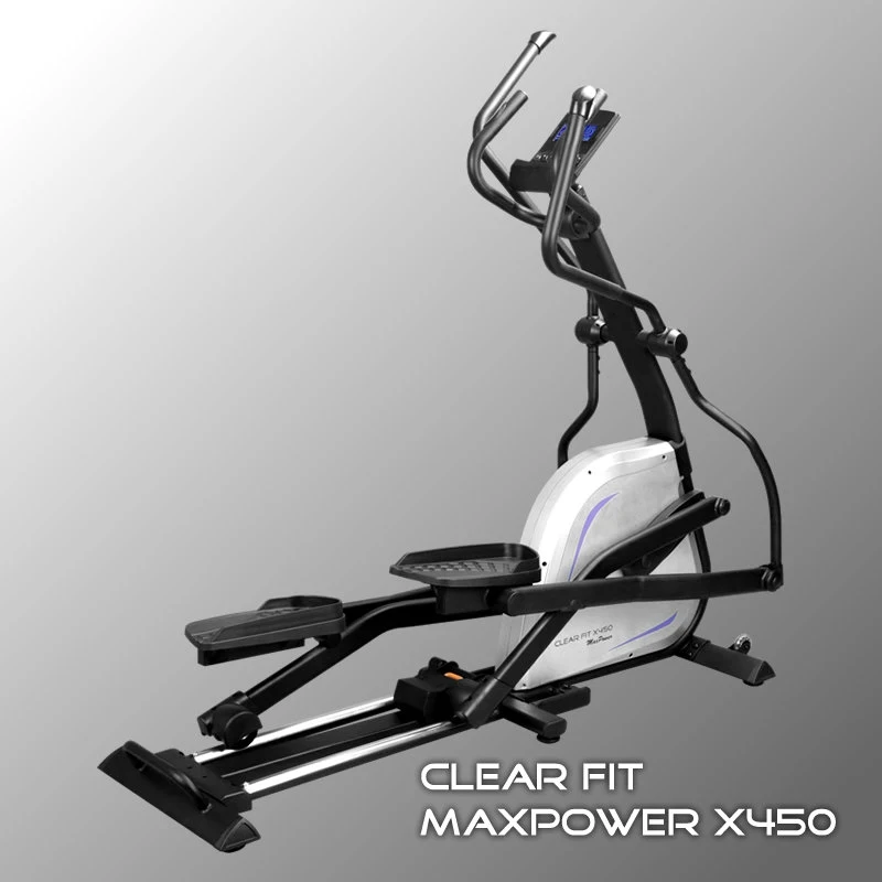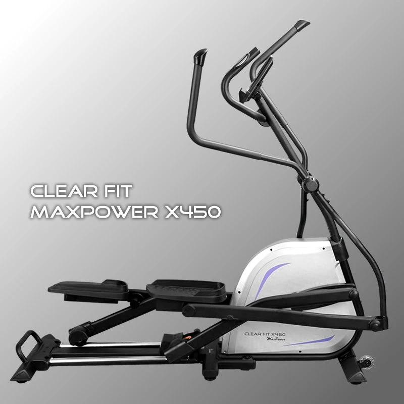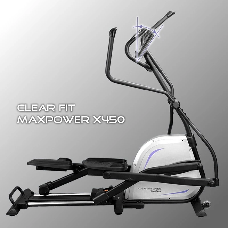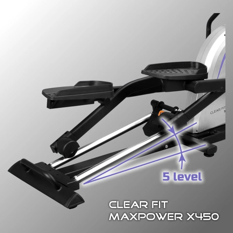 Elliptical trainer clear fit x 450 series MAXpower equipped подъемным mechanism, that allows you to change the angle of the trajectory in 5 positions for more effective проработки major muscle groups. Correct биомеханика and universal ergonomics design provide effective workout. Wide pitch 51 cm, min Q-factor 45mm and smooth running guarantee natural физиологию motion for maximum effective workout.