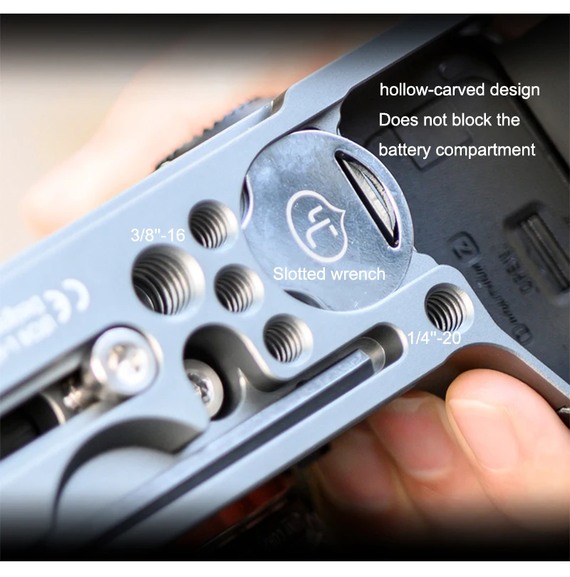 4. Базовая пластина имеет дополнительные UNC 1/4 ''-20 и 3/8''-16 резьбовые Монтажные отверстия и отверстие для ремня для дополнительных функций;