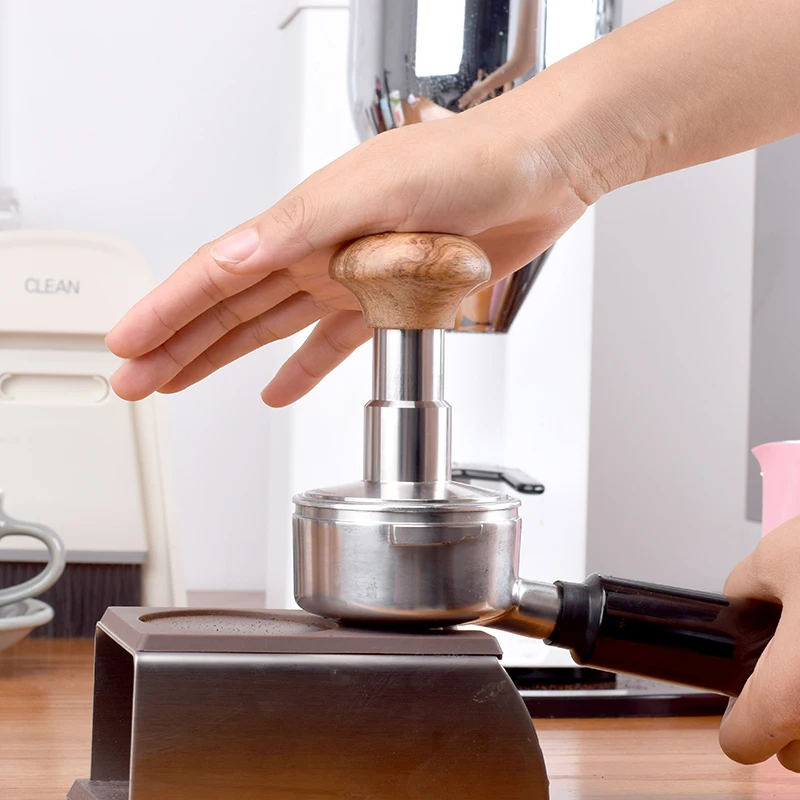 The tamper base and the handle can be exchanged by user easily for different requirement. The body is made by food grade stainless. And the handle is made by wood or other suitable material for good handling and personally choice
