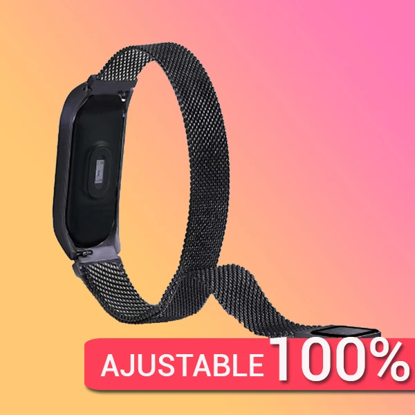 -Цветной металлический сплав со свойствами нержавеющей стали: прочный, легкий и регулируемый. Кроме того, он обладает полной гибкостью, что позволяет удобно носить его в течение дня. Особенности:Регулируемая застежка с магнитной системой, Которые обеспечивают безопасность и твердость, так что вы не потеряете свой Xiaomi Mi Band 3 и 4. EsПолностью водонепроницаемый, Не выцветает и не портится при влаге.