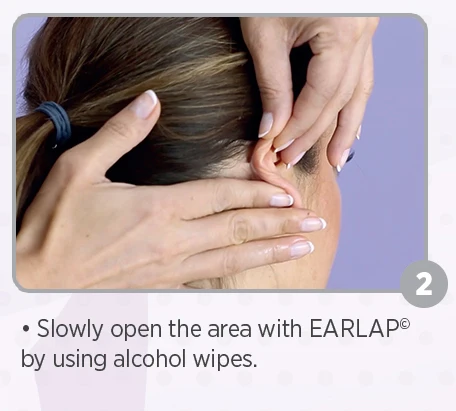 Очистите кожу, она должна быть хорошо очищена водой и мылом. Подготовьте мочки уха. Нанесите Ушную раковину и держите ее на месте вручную на 60 секунд Вы готовы к отправке.