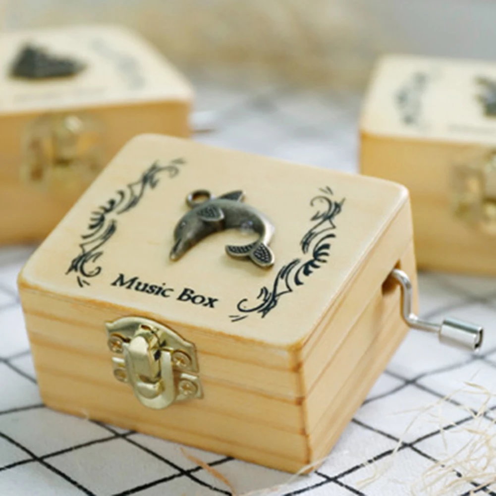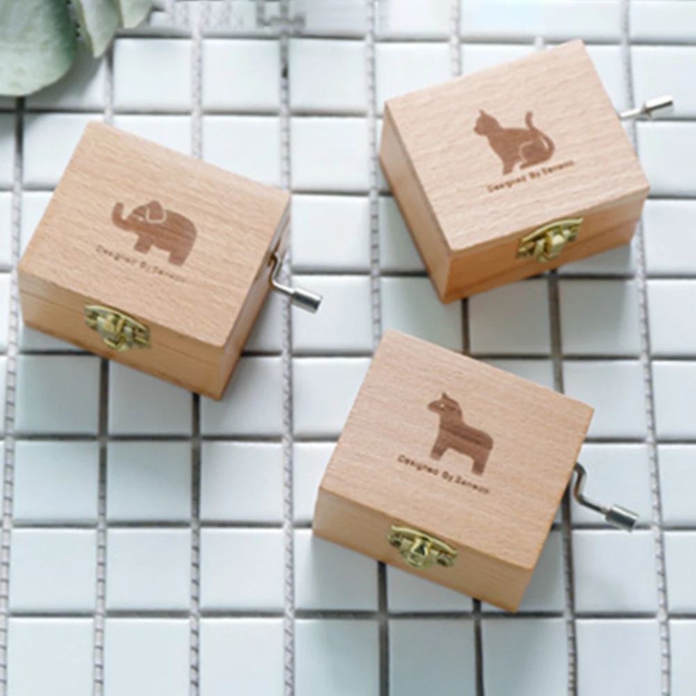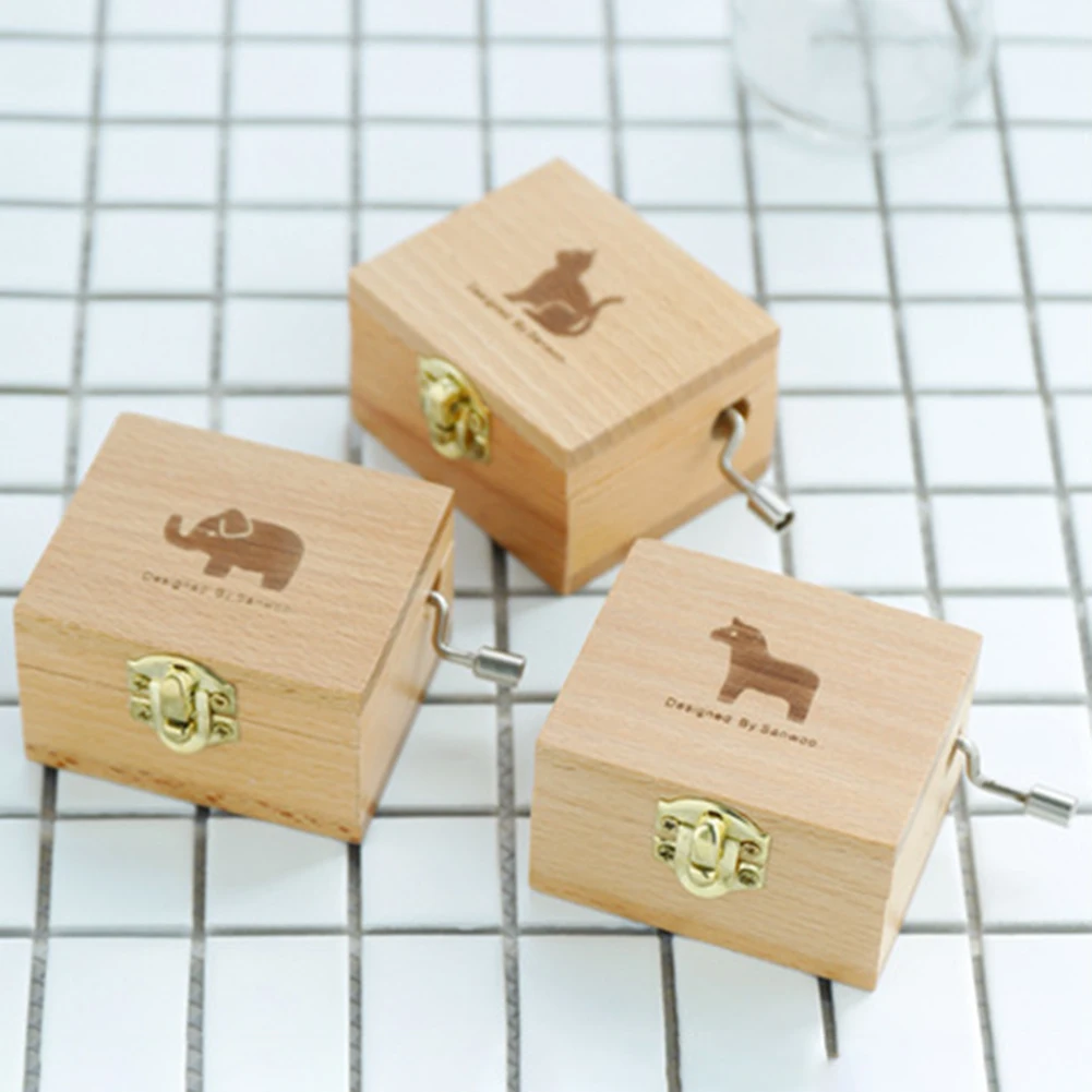 Животное/Башня/парусник резная мини деревянная рукоятка музыкальная шкатулка детский подарок на день рождения