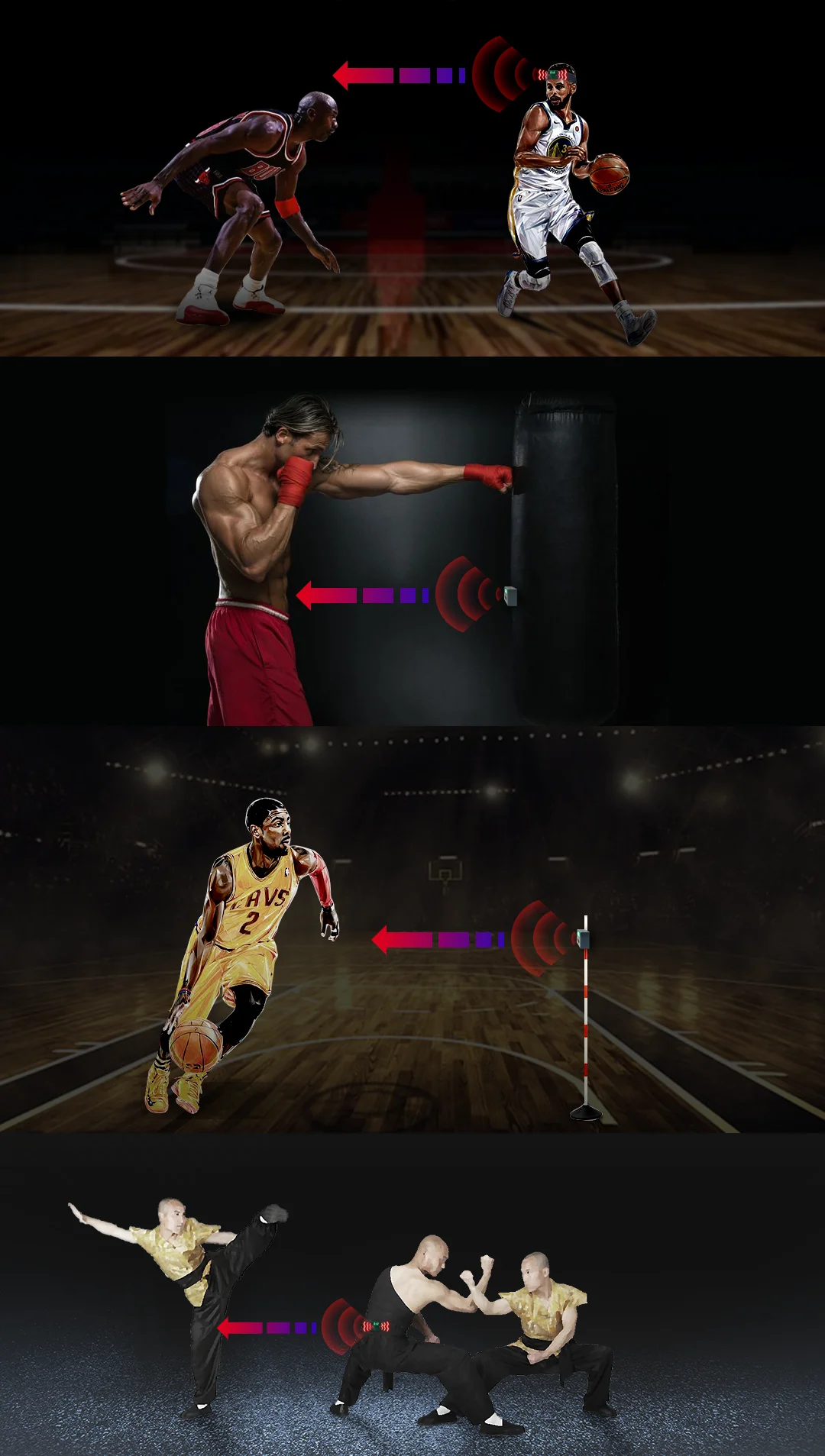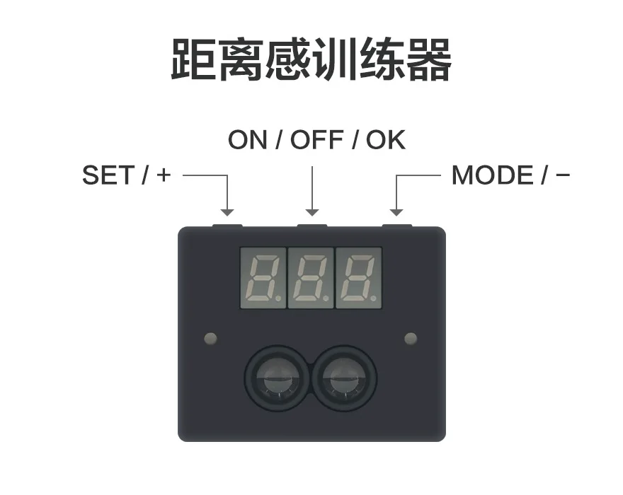 Тренируйте восприятие расстояния. После установки расстояния Порог, когда ощущается что-то ближе, чем порог, Он начинает светильник, красный светильник и звуковой сигнал. Вы можете прикрепить Тренажер на Пробивной сумке, столбе, шарфе или поясе. Он покажет вам Если вы слишком близки к цели.