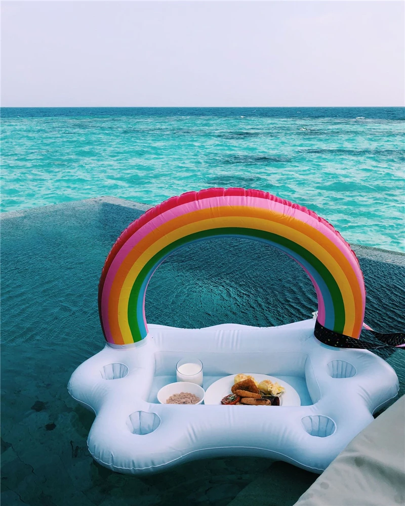 Bullet Points: 1、Rainbow pool floating plate. Size: approx. 4-hole:90* 60*60cm. 5-hole:95* 55*55cm. 2、It features a rainbow shape, so it is very interesting for children and adults. 3、The product is thick, soft and durable. It is made of high quality rain grade non-phthalate material. 4、New matte finish with quick valve. The rate of inflation and deflation is more than 5 times faster. 5、It can be inflated with a hair dryer or a toy air pump. Suitable for children and adults birthday gifts, summer gifts. Features: Advantages introduction: This product belongs to outdoor entertainment products, mainly use in swimming, beach floating bed, swimming pool, grass, home. It is also one of the children's favorite toys. Description: Name: Inflatable swimming ring Material: 0.25mm environmental pvc After inflation specification: 4-hole:90* 60*60cm . 5-hole:95* 55*55cm. Color: as shown List: 1* Inflatable Drink Holder