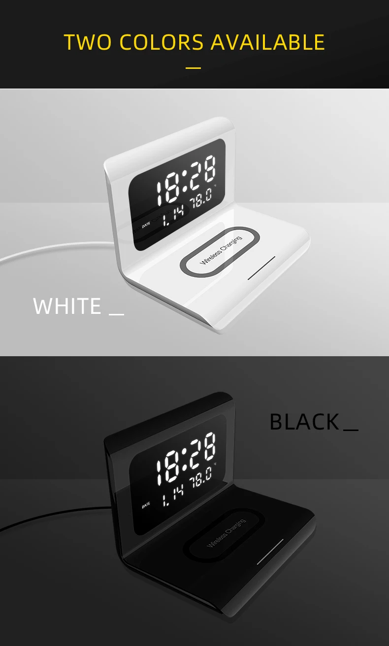 1 * Беспроводное зарядное устройство с часами 1 * кабель для передачи данных 1 * Руководство пользователя 1 * упаковочная коробка