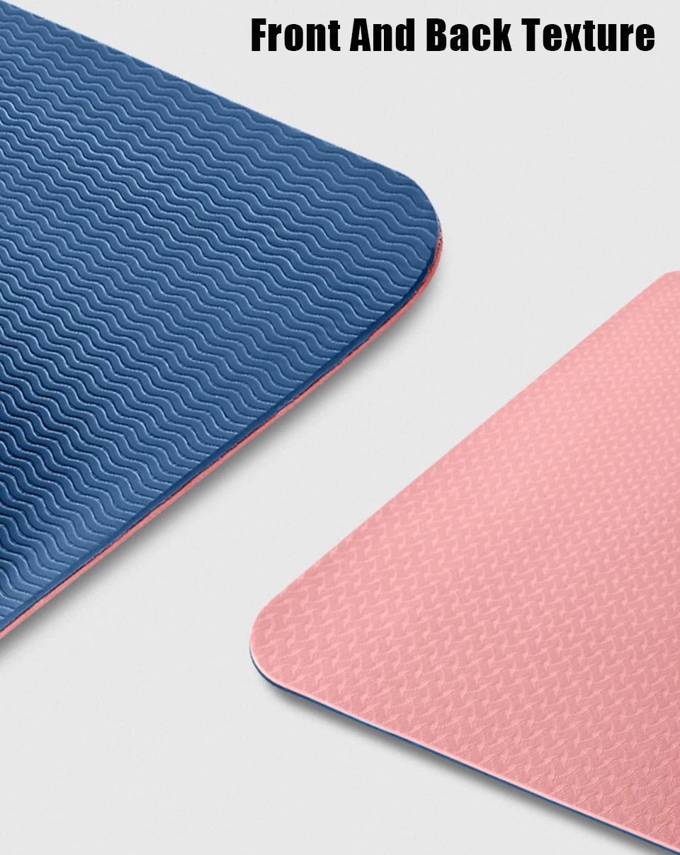 TPE Yoga Mat with Position Line Cushion Non Slip Yoga Novice Odorless Exercise Mat Two-color Fitness Gymnastics Mats 6 mm Note:1-6 is a single-color TPE pad with body line, and 7-13 is a two-color TPE pad with body line. Material:TPE Size: 183cm * 61cm Thickness: 6mm Style: Posture line version Color: As picture Occasion: Yoga, Training, Fitness Users: Yoga Lovers (Women&Men) Features:Waterproof and Anti-slip/Easy clean/High quality/Environmental protection Applicable for all age group,6mm is great for beginner and can effectlively buffer Package content:1* TPE Yoga Mat 1*Mesh bag 1*Tied rope(random color)