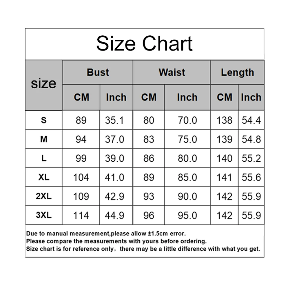[Наш Размер 3XL] Обхват груди: 114 см/44,9 дюйма, обхват талии: 145 см/57,1 дюйма, длина: 142 см/55,9 дюйма (приблизительно)