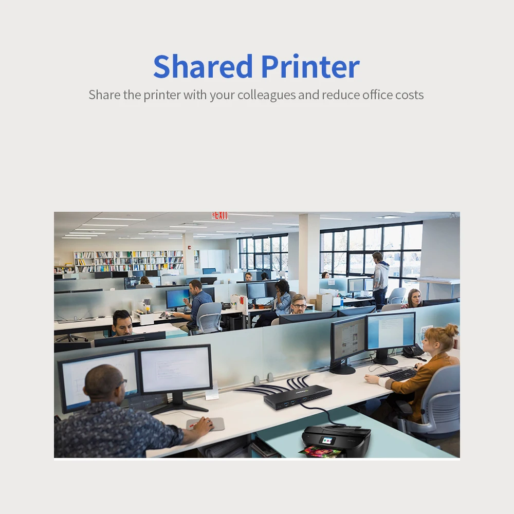 8 в 4 дизайн, позволяет управлять 8 компьютерами для совместного использования 4 usb-устройств, удобно и эффективно. USB2.0 с высокой скоростью передачи, передача файлов большой емкости на высокой скорости. Нет необходимости подключать кабель принтера, делиться одним принтером и сокращать офисные расходы. Подключи и играй, поддержка Windows/Mac OS/Android/Linux. Совместим с usb-устройствами, мышью, клавиатурой, u-диском. Полностью металлический дизайн может защитить печатную плату и уменьшить внешние помехи.