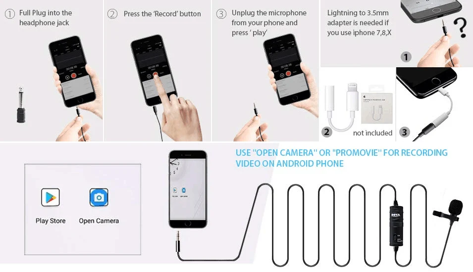 Compatitable for Smartphones, cameras, camcorders, audio recorders, tablets,and other audio/video recording devices