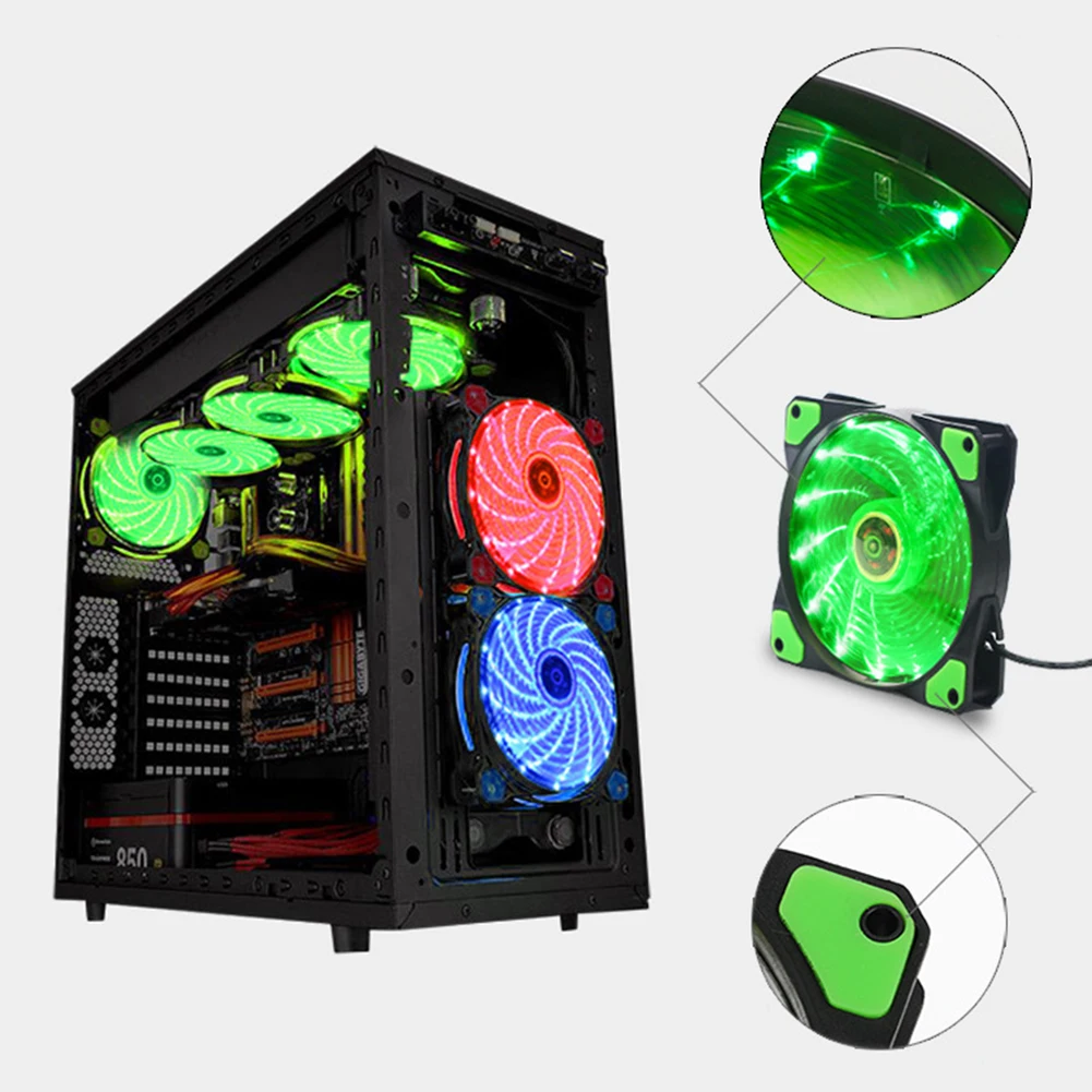 Ультратихий компьютер ПК чехол Охлаждающий радиатор вентилятора вентилятор 12x12 см 12 В 15 светодиодный