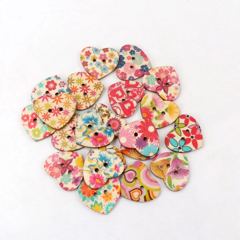 Разноцветные Круглые пуговицы в форме сердца с двумя отверстиями, деревянные швейные пуговицы, скрапбукинг, смешанные натуральные цвета, Costura Botones bottoni botoesДружеское напоминание: