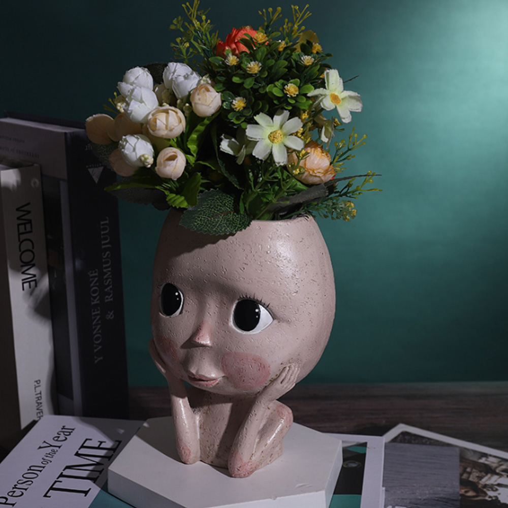-Симпатичный Креативный цветочный горшок в форме бюста делает растения похожими на женские волосы.