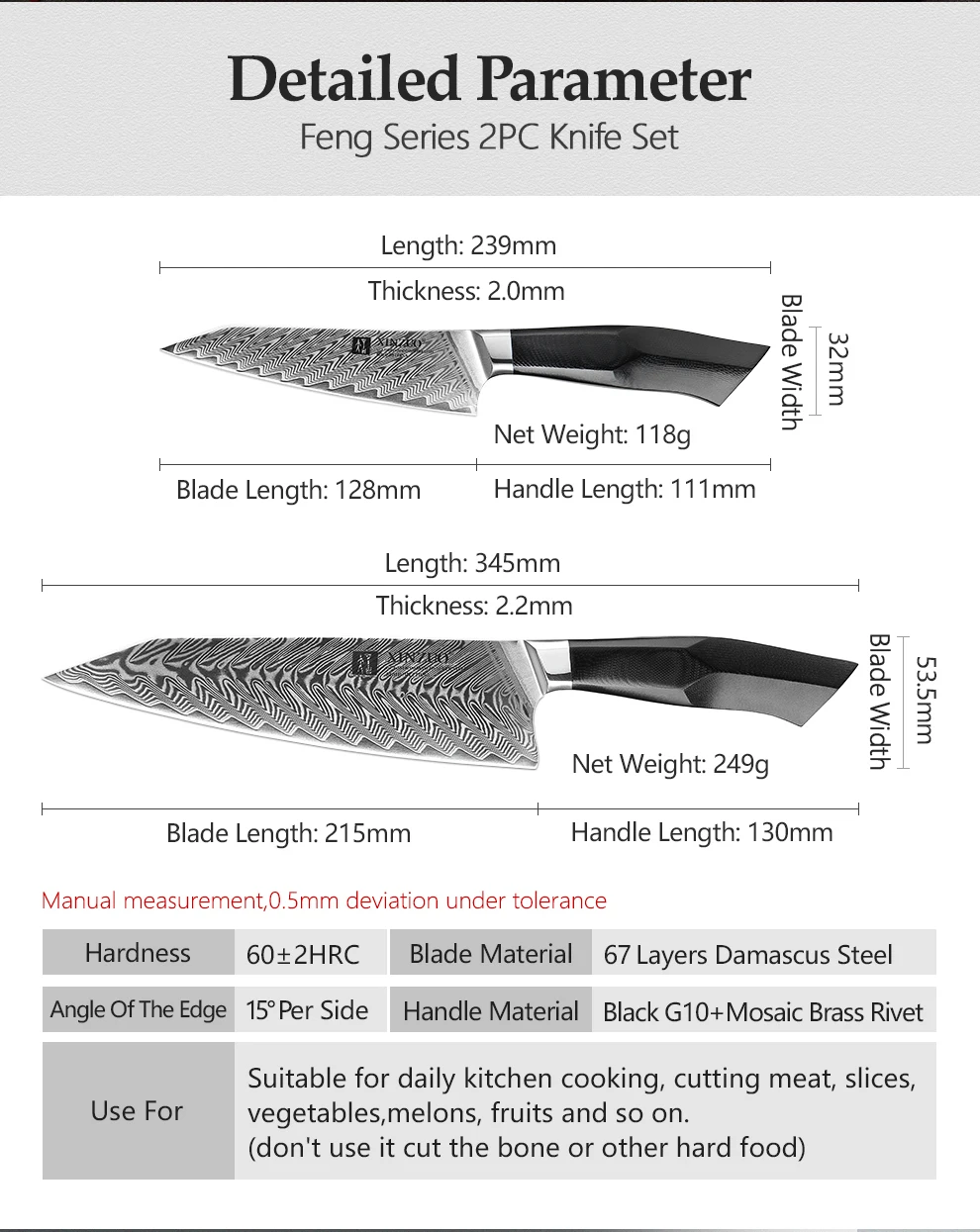 XINZUO Фэн серии 2 шт Дамасская сталь набор ножей