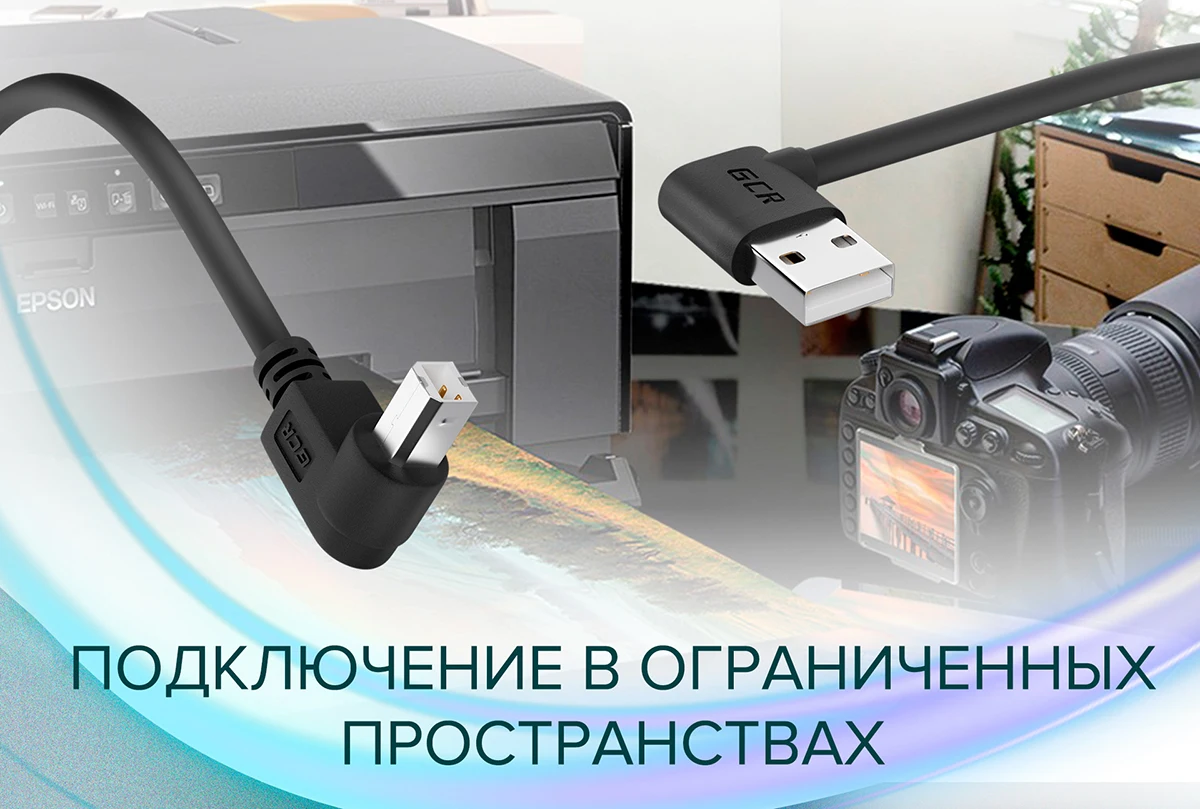 Особенности:* Угловая форма. Подключение в труднодоступных местах* Максимальная скорость передачи данных 480 Мбит/с* Поддержка стандарта USB 2.0* Экранирование. Защита от помех* Армирование. Высокая прочность кабеля* Надежные порты-разъемыКабель для принтера изготовлен из качественных материалов. Двойное экранирование, сочетающее фольгирование и армирование, позволяет обеспечить защиту от электромагнитных помехи внешних повреждений. А благодаря специальной защите от замерзания, кабель отлично работает даже при низких температурах.