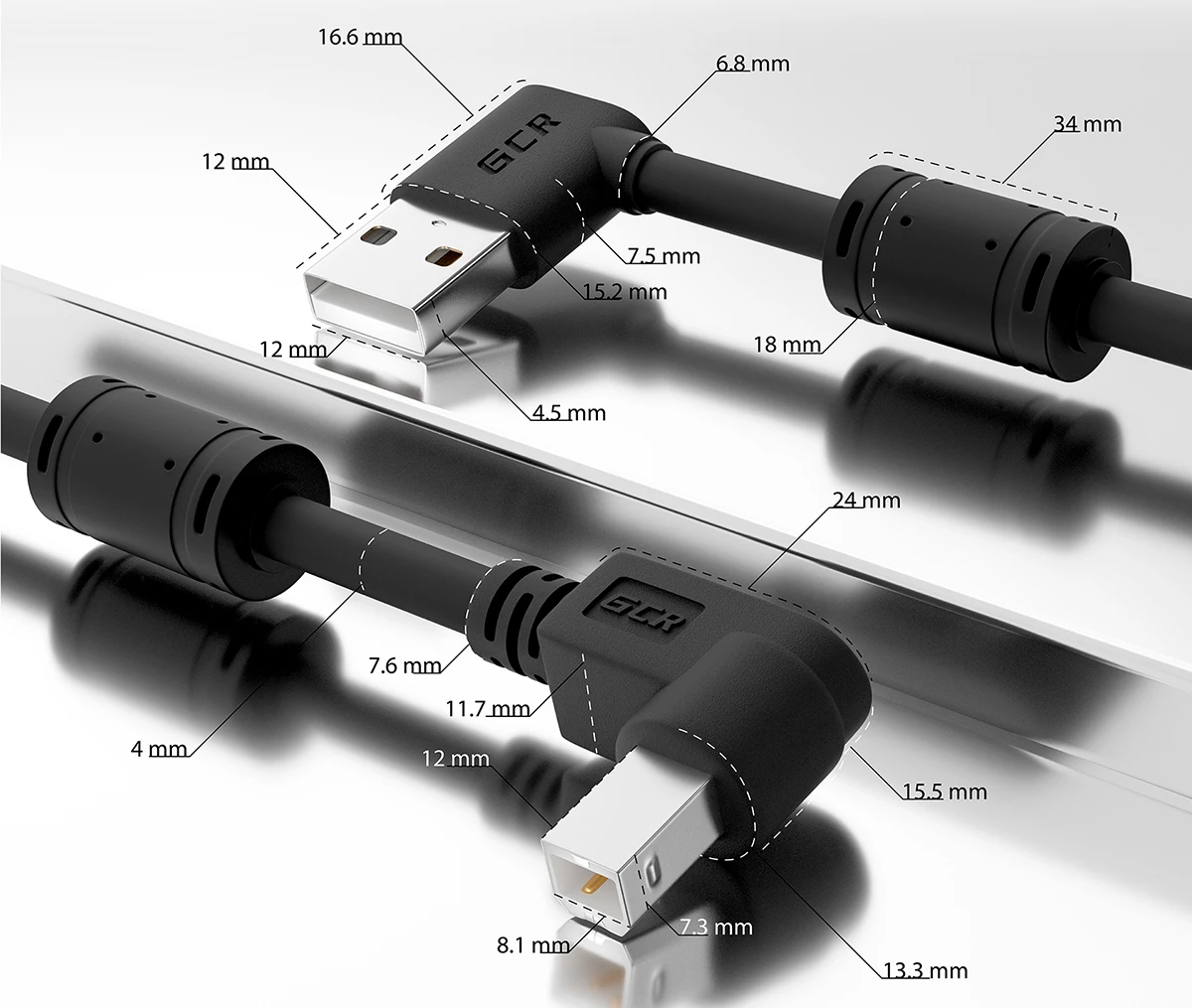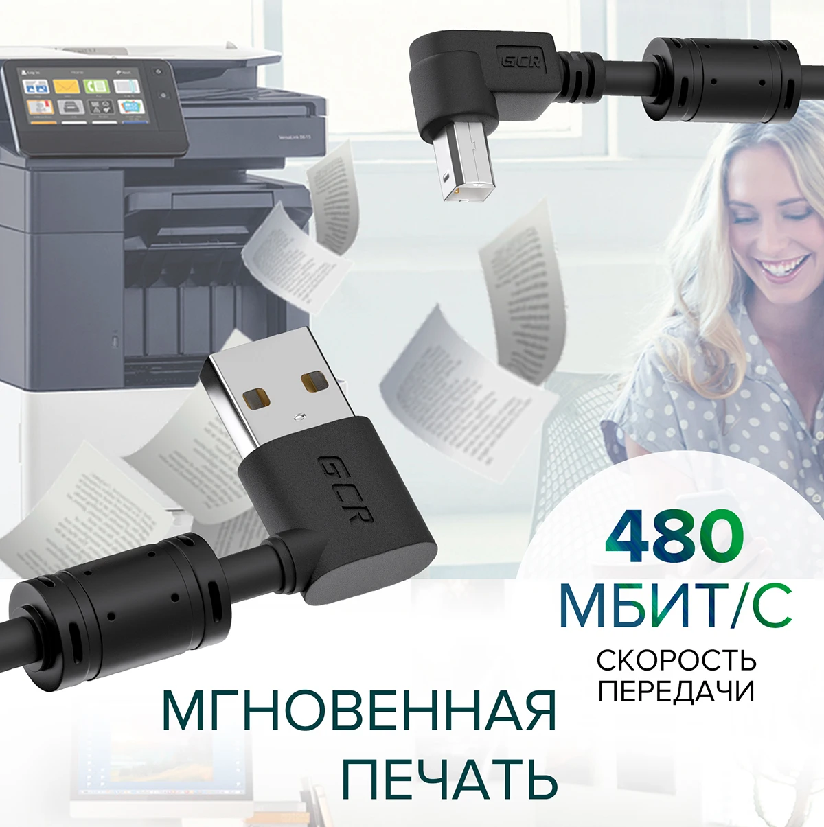 GCR Угловой кабель USB AM BM для принтера МФУ сканера камера ксерокс печати Data cable for Xerox Panasonic HP Brother Epson Canon черный провод угол 90для офиса дома шнур 50 см 1 м 150 см