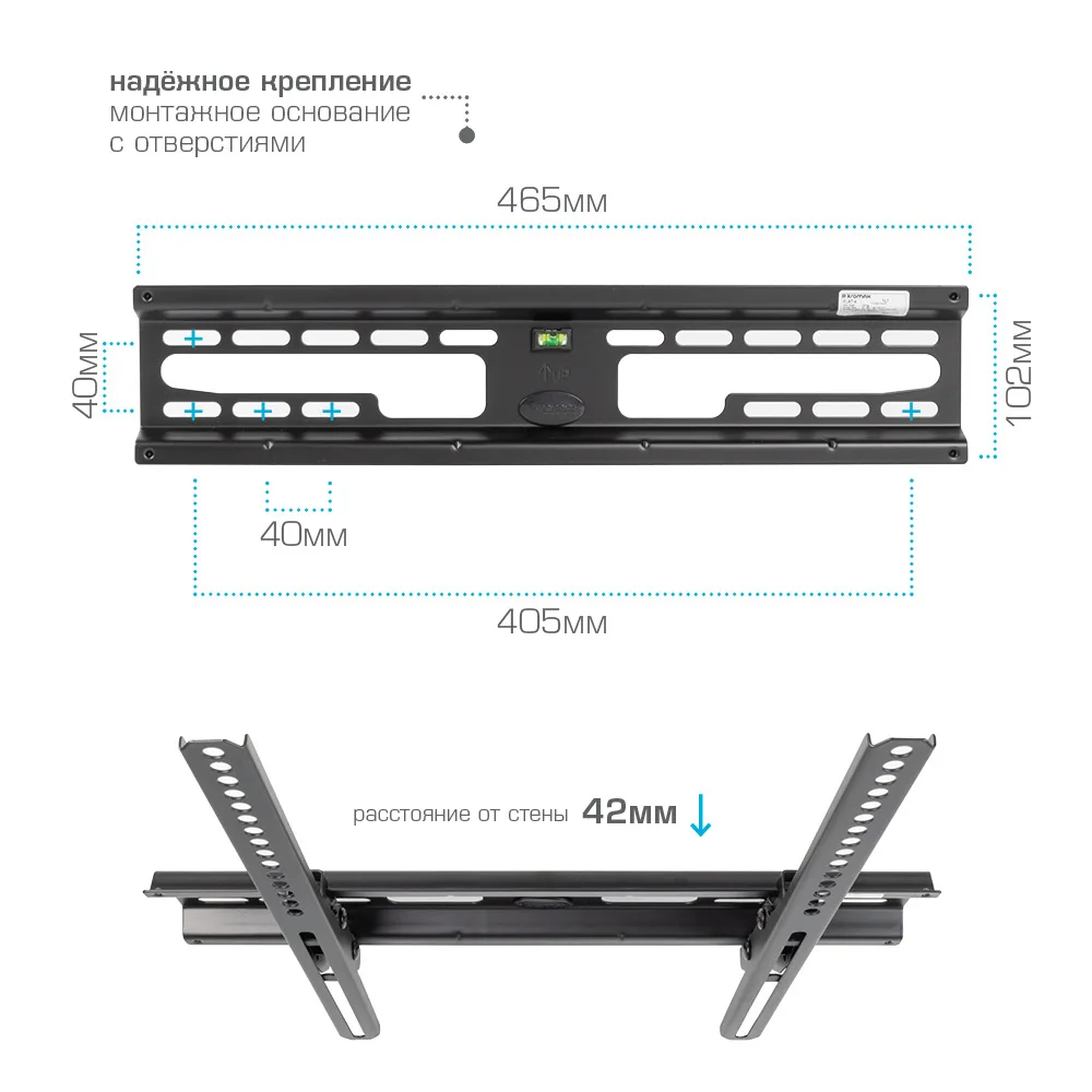 Универсальная система крепления для любого телевизора с посадочными отверстиями от 32 до 400 мм по горизонтали и от 50 мм до 400 мм по вертикали
