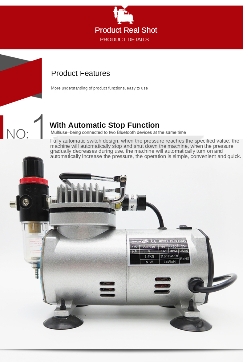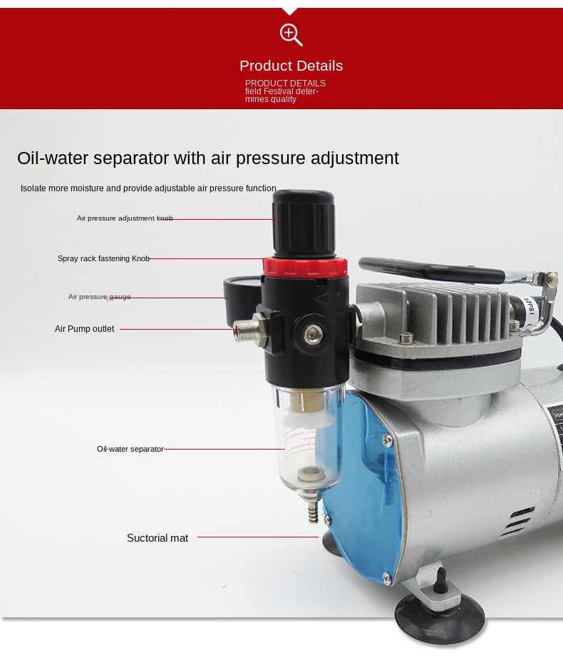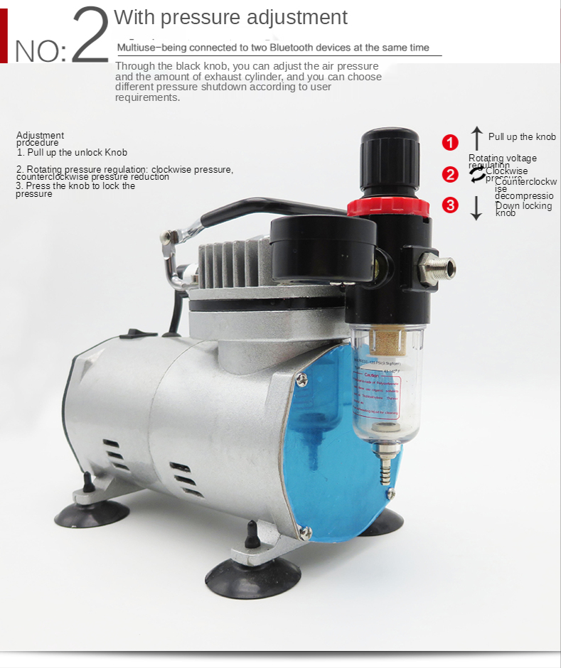 Компрессор аэрограф предназначен для пользователей, которым нужен высококачественный эффект распыления. Идеально подходит для вашего искусства распыления, а также для ногтей и временных татуировок, украшения тортов, крафт-живописи, хобби, коммерческого искусства, иллюстраций, ретуширования фотографий и других воздушных щеток. Так что не стесняйтесь, просто возьмите его домой!