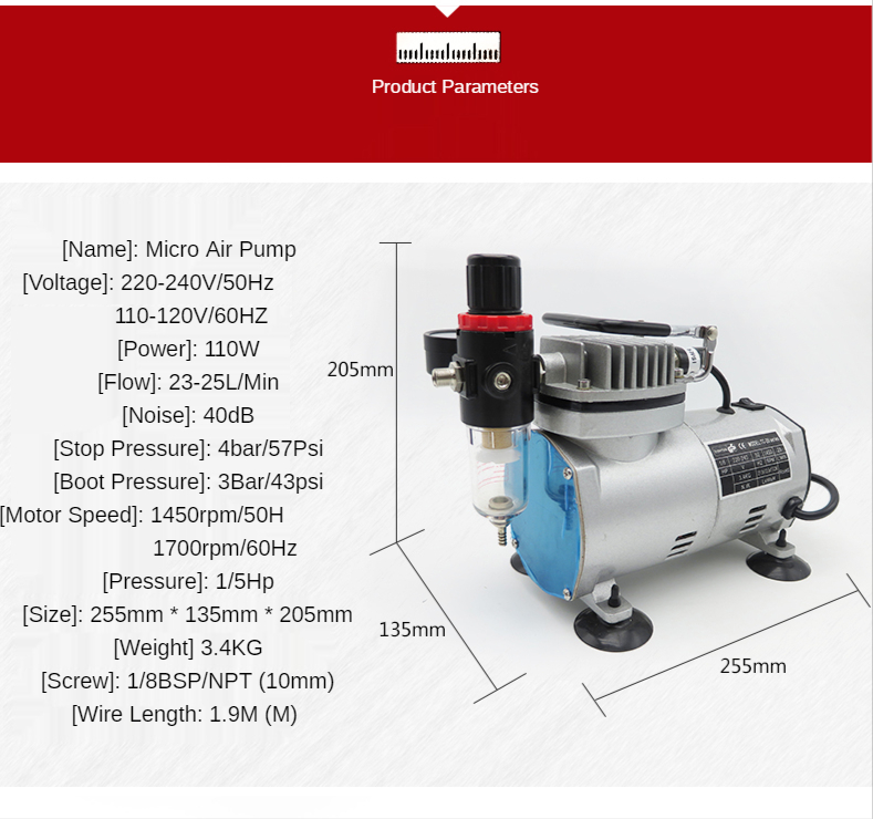 Мощный 1/5 л.с. компрессор аэрограф портативный, компактный и высокоэффективный.