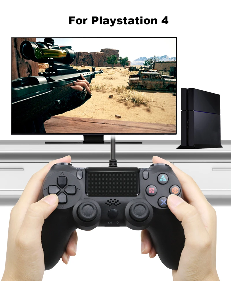 Notice: Wired gamepad without headphone jack, without touchpad function, without EXT Jack, it need cable to connect for PS4/PS3/PC.