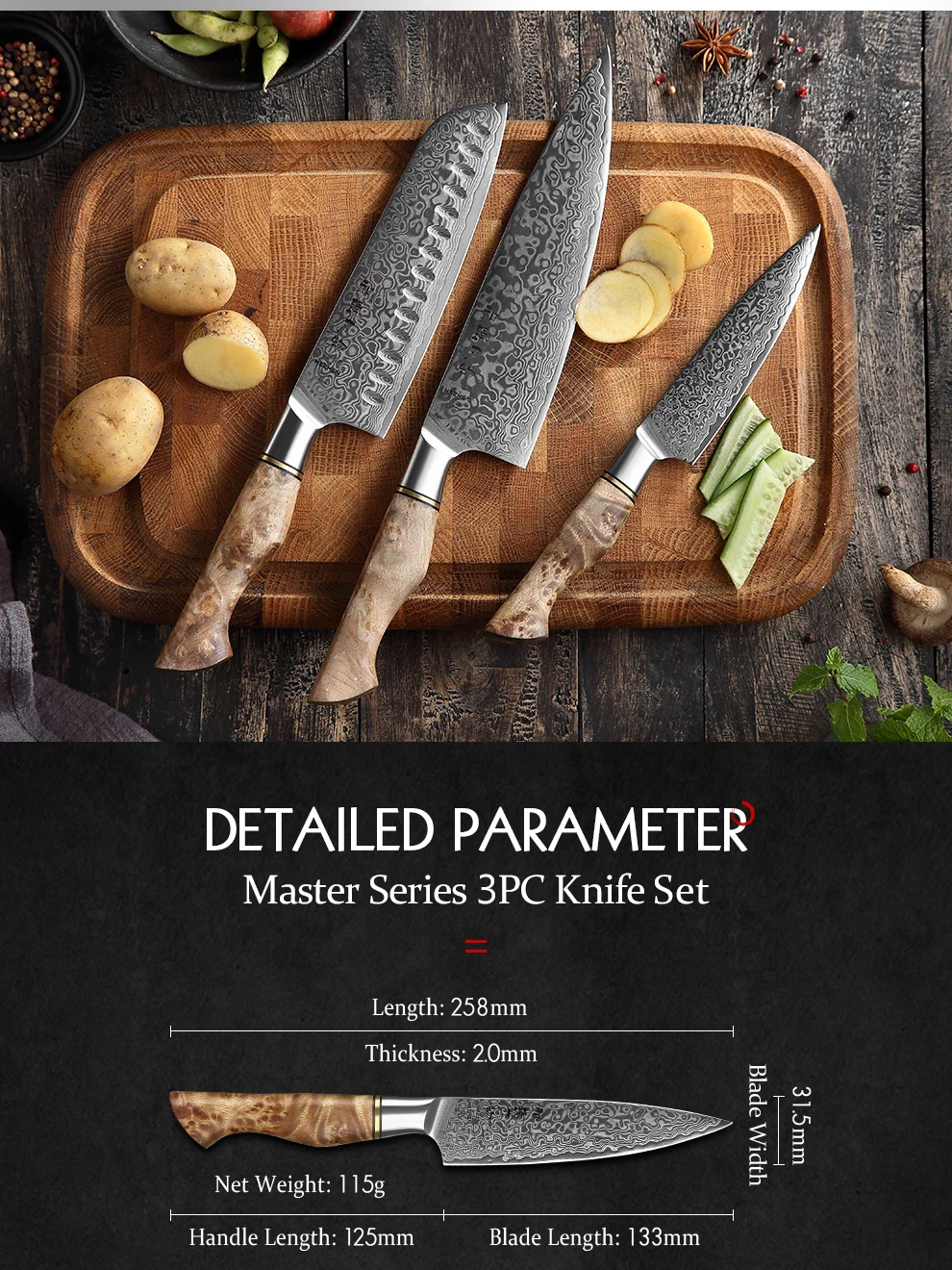 Материал лезвия:67 слоев Дамасская супер сталь