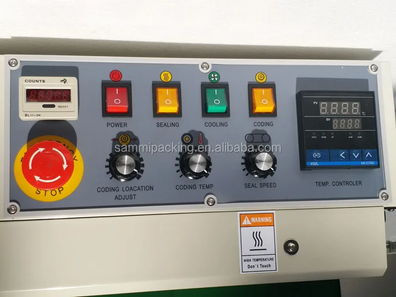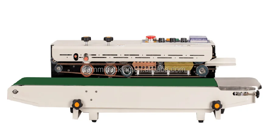 FRD-1000C Solid-ink codiong band sealer is a new model of automatic plastic film sealing machine with a digital counter, which integrates color printing, sealing, continuous transmission of products, with clean and bright pattern on the sealing part, color selectable, instant printing and instant dry, and convenient to change the charactersSPECIFICATION