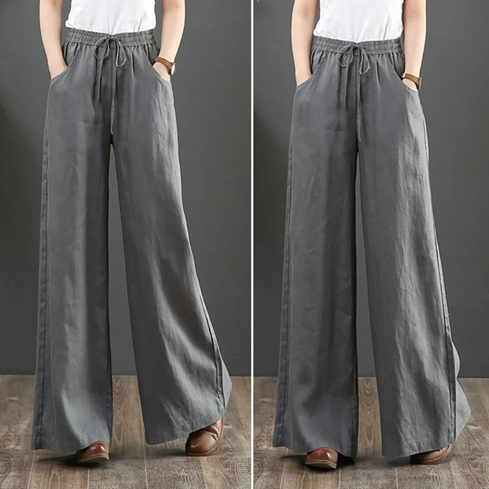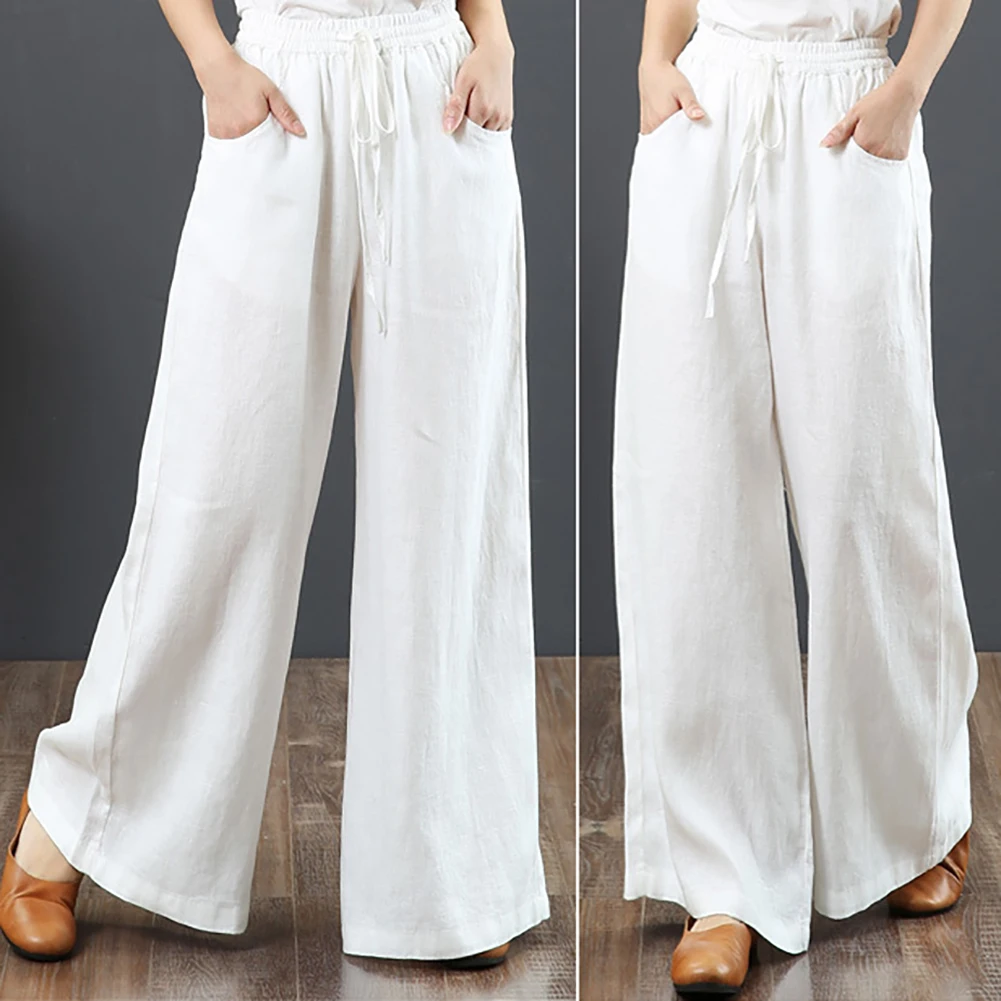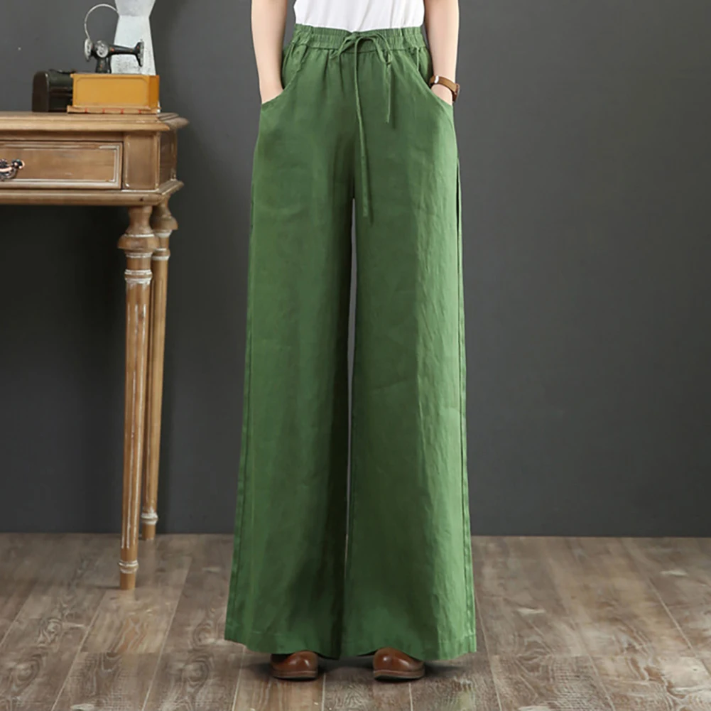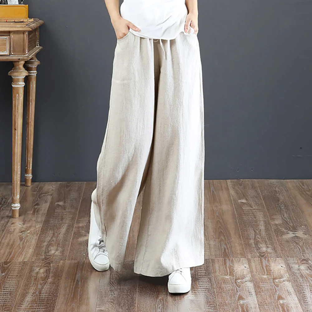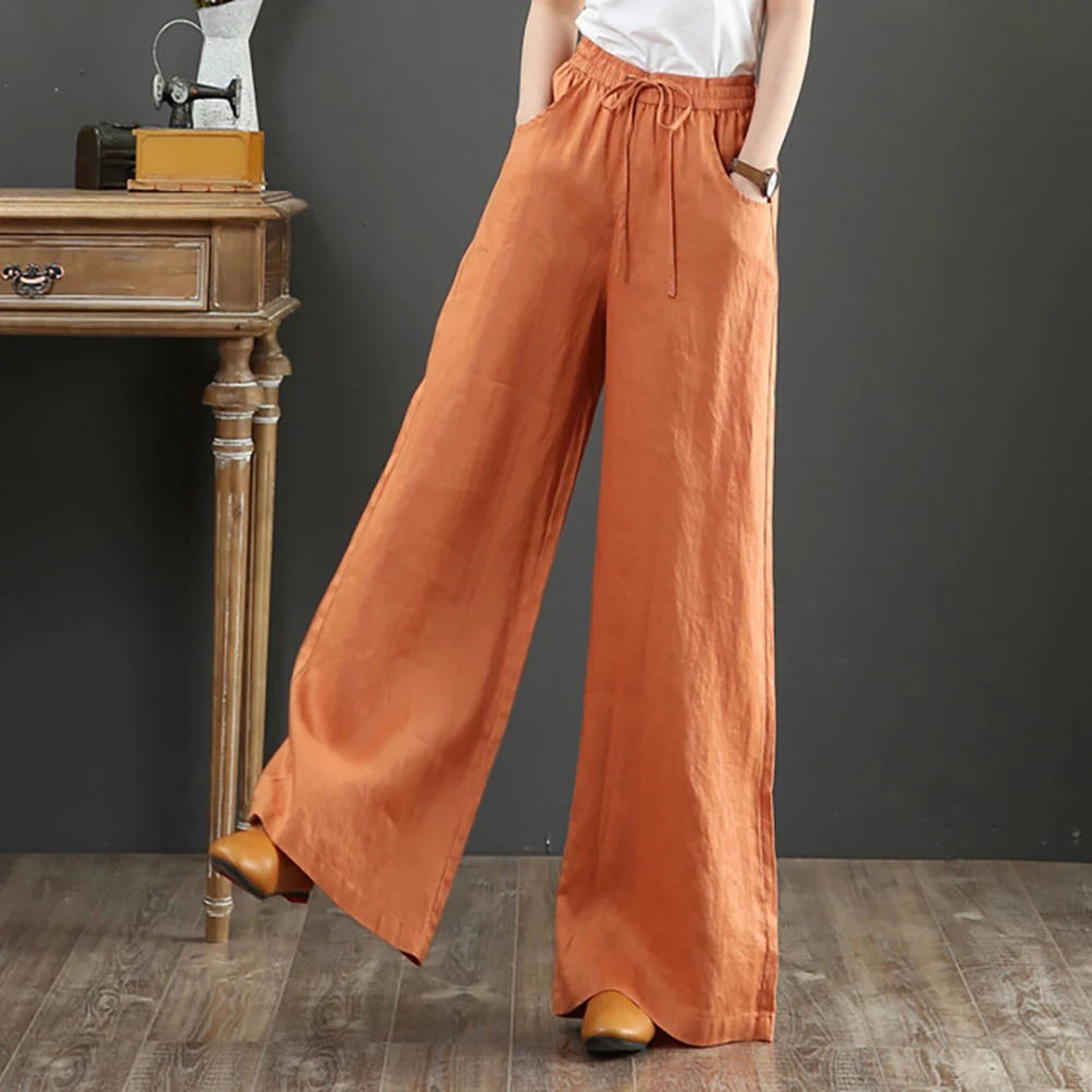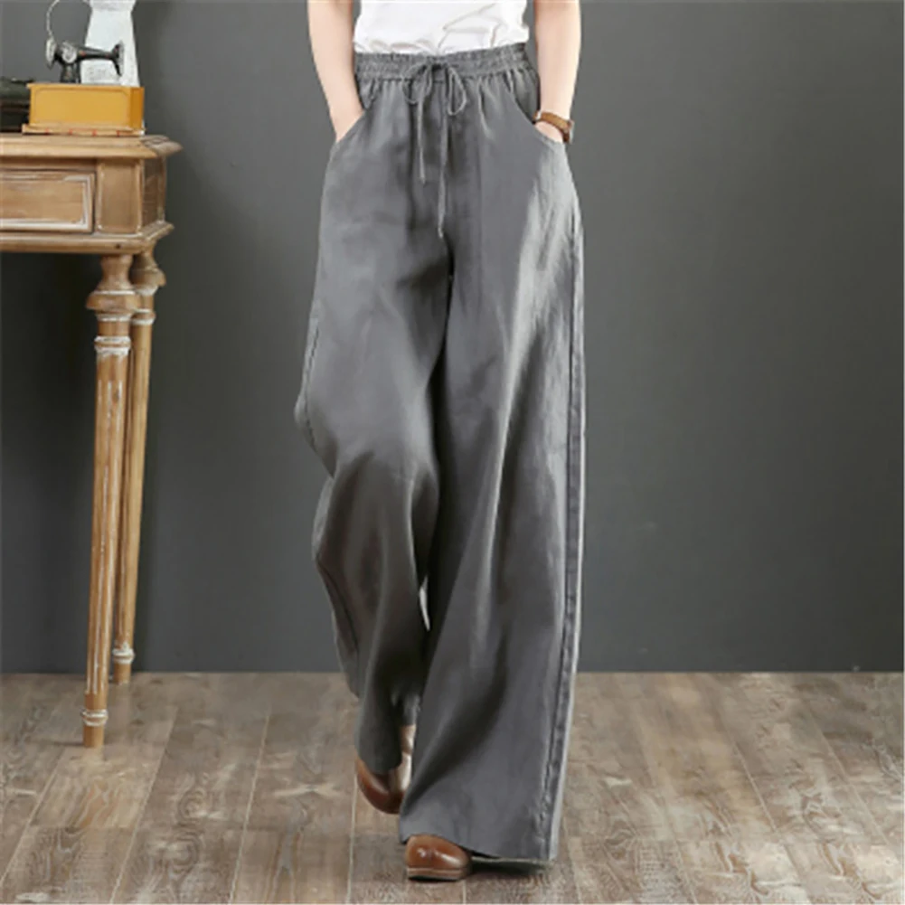 Женские винтажные повседневные хлопковые льняные брюки с высокой талией Прямые брюки