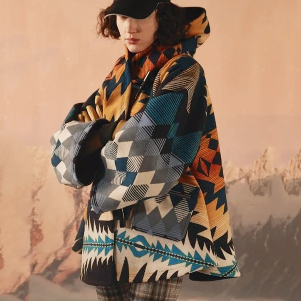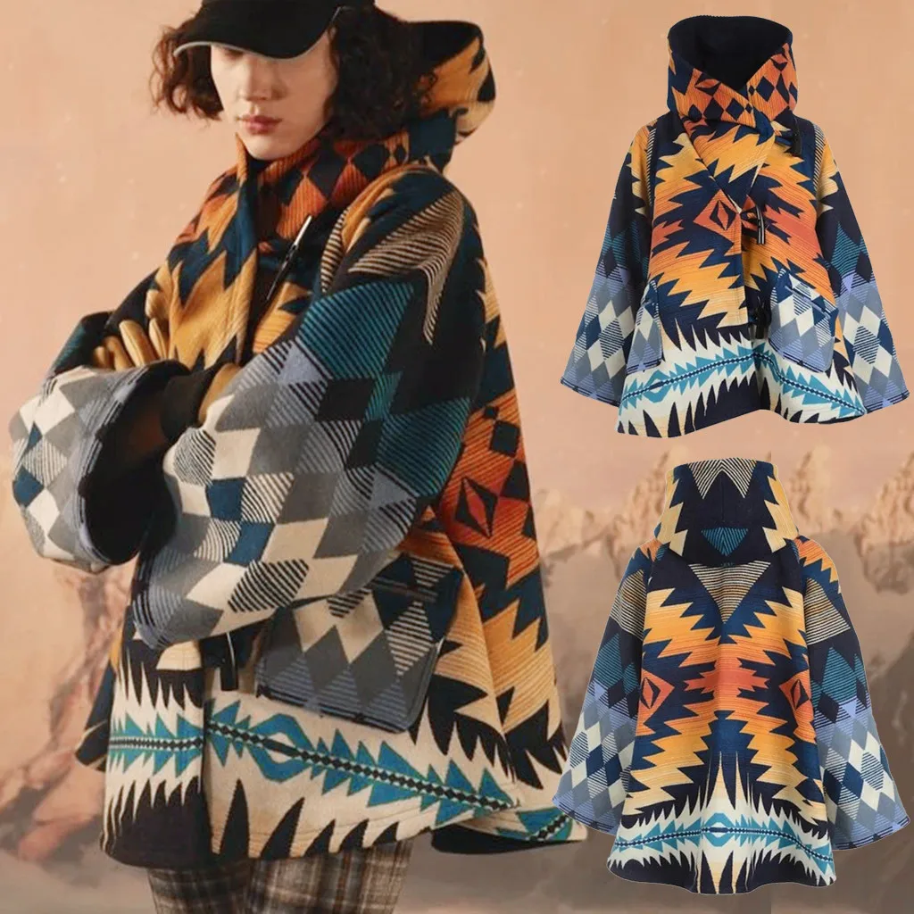 Women's Winter Loose Horn Buckle Travel Style Cloak Coat