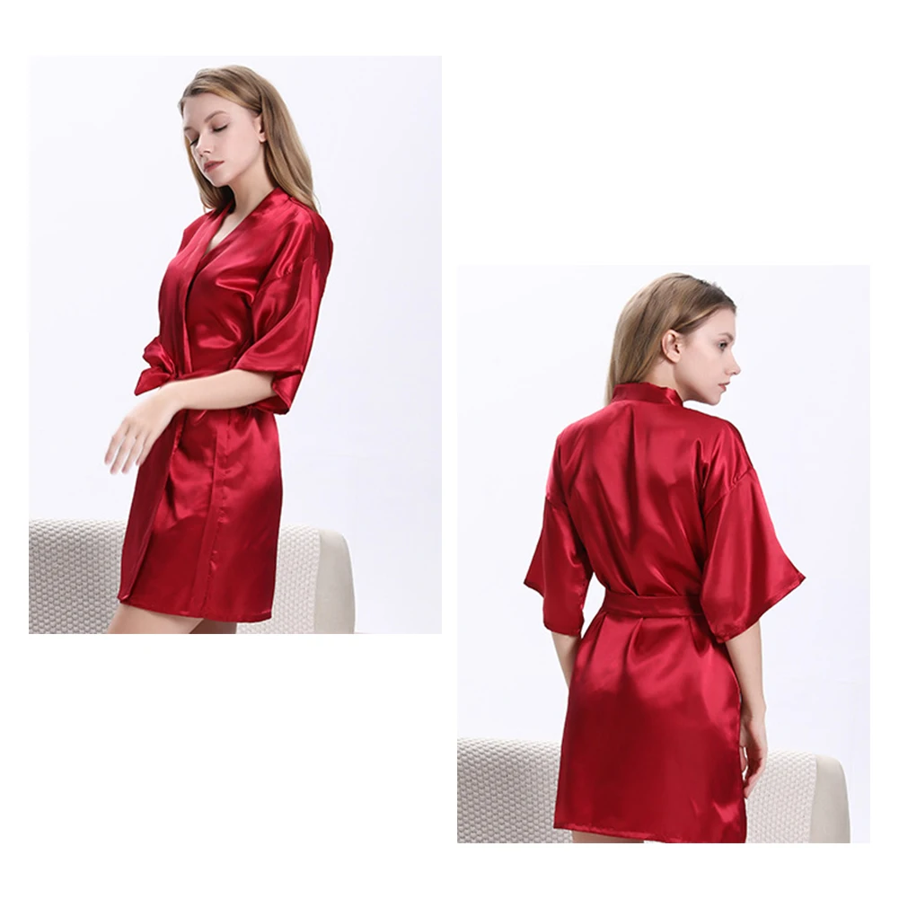 Женское летнее однотонное платье миди из шелка ледяного цвета, банный халат с поясом, одежда для сна
