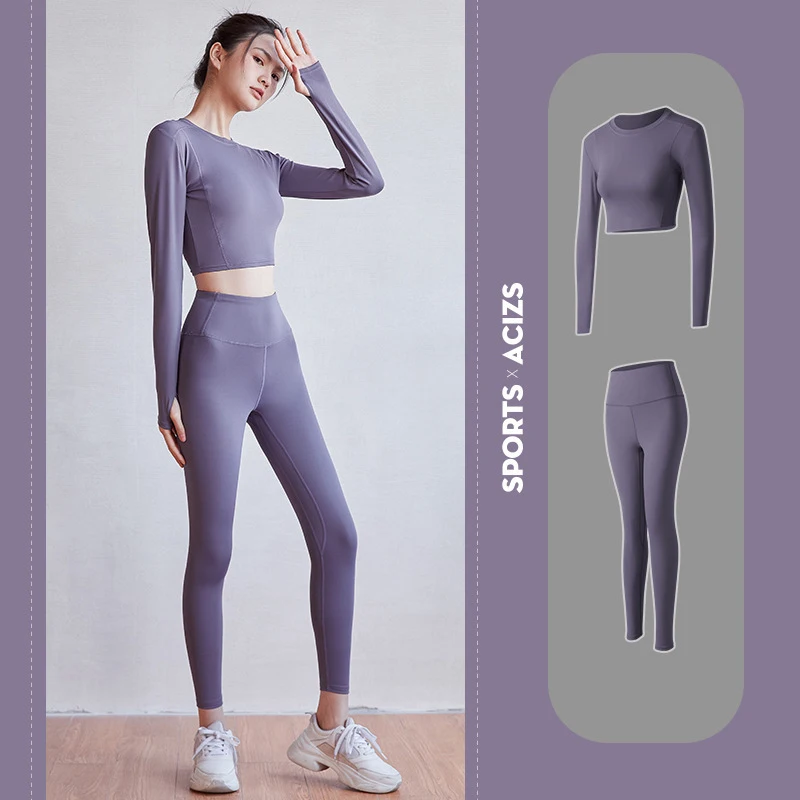 Ranberone Suit Women Sport Long Sleeve Slim Shirts Yoga Leggings 2 Piece Set Gym Fitness Suit Clothes Workout Female Set 2020