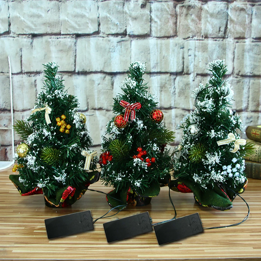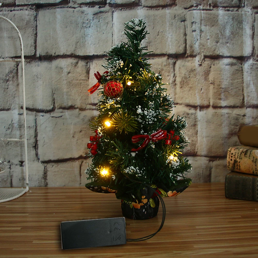 *30cm Tabletop Artificial Mini Christmas Tree With Lights Xmas Decor Ornaments