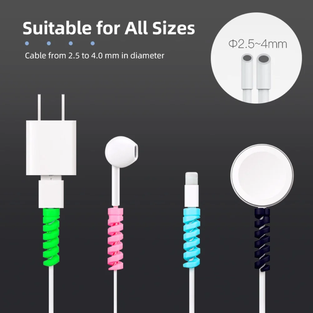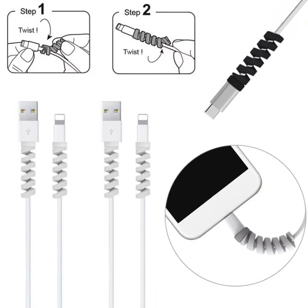 Защита кабеля со спиральным дизайном универсальна для всех зарядных кабелей.