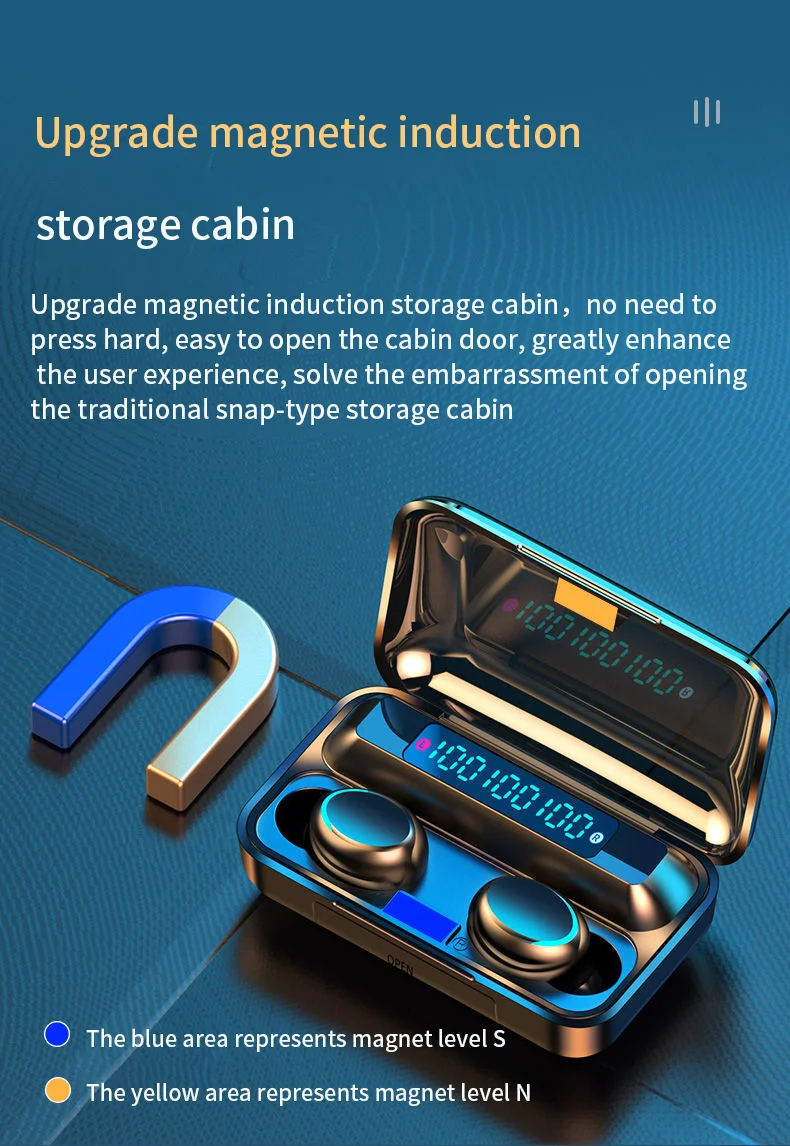 Особенности продукта: 1, Bluetooth V5.0, Поддержка большинства устройств bluetooth и низкое энергопотребление 2, чехол для зарядки 2200 мАч может полностью заряжать 2 наушника примерно 15 раз, предлагаем больше времени для прослушивания музыки, также он может заряжать ваш телефон как внешний аккумулятор. 3, с водонепроницаемой технологией, больше не нужно беспокоиться о воде и поте 4, 8MMS двойной привод, наслаждайтесь 9D сильным глубоким басом и музыкальным звуком 5, популярная функция сенсорного управления, поддержка коммутационных песен, телефонных звонков и голосовых вызовов. Списки аксессуаров: 2 * Bluetooth наушники 1 * чехол для зарядки 1 * USB кабель 1 * Руководство пользователя