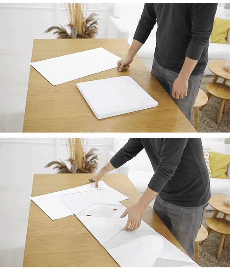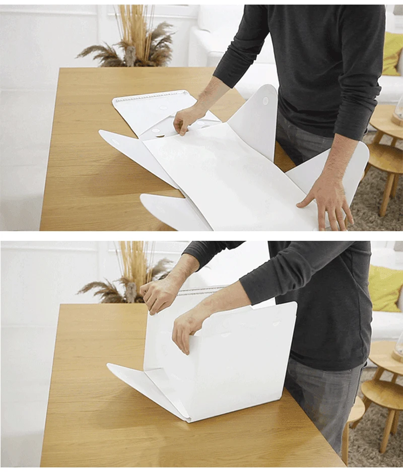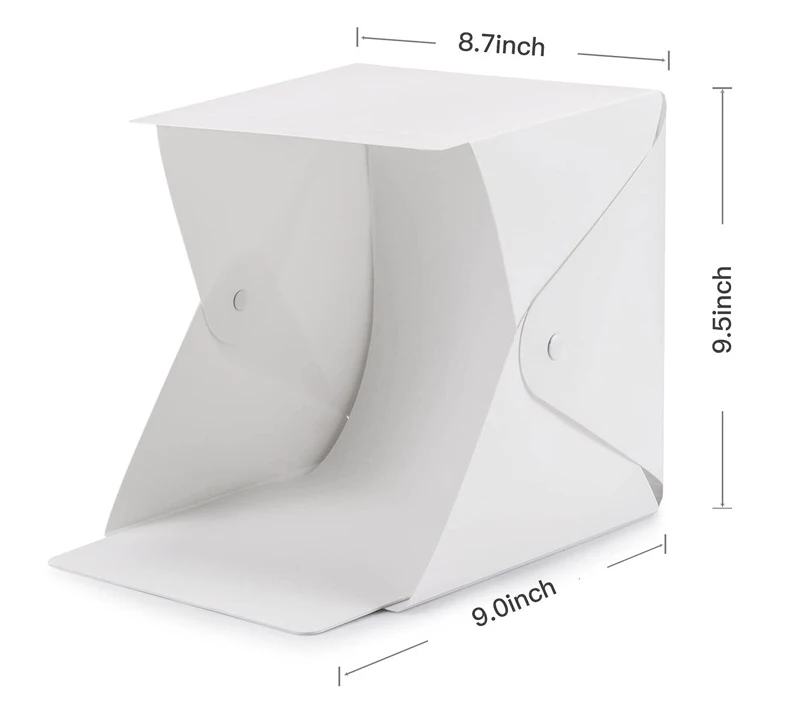 Фотостудия коробка не больше, чем кусок бумаги А4 после складывания. Легко носить с собой и компактно хранить.