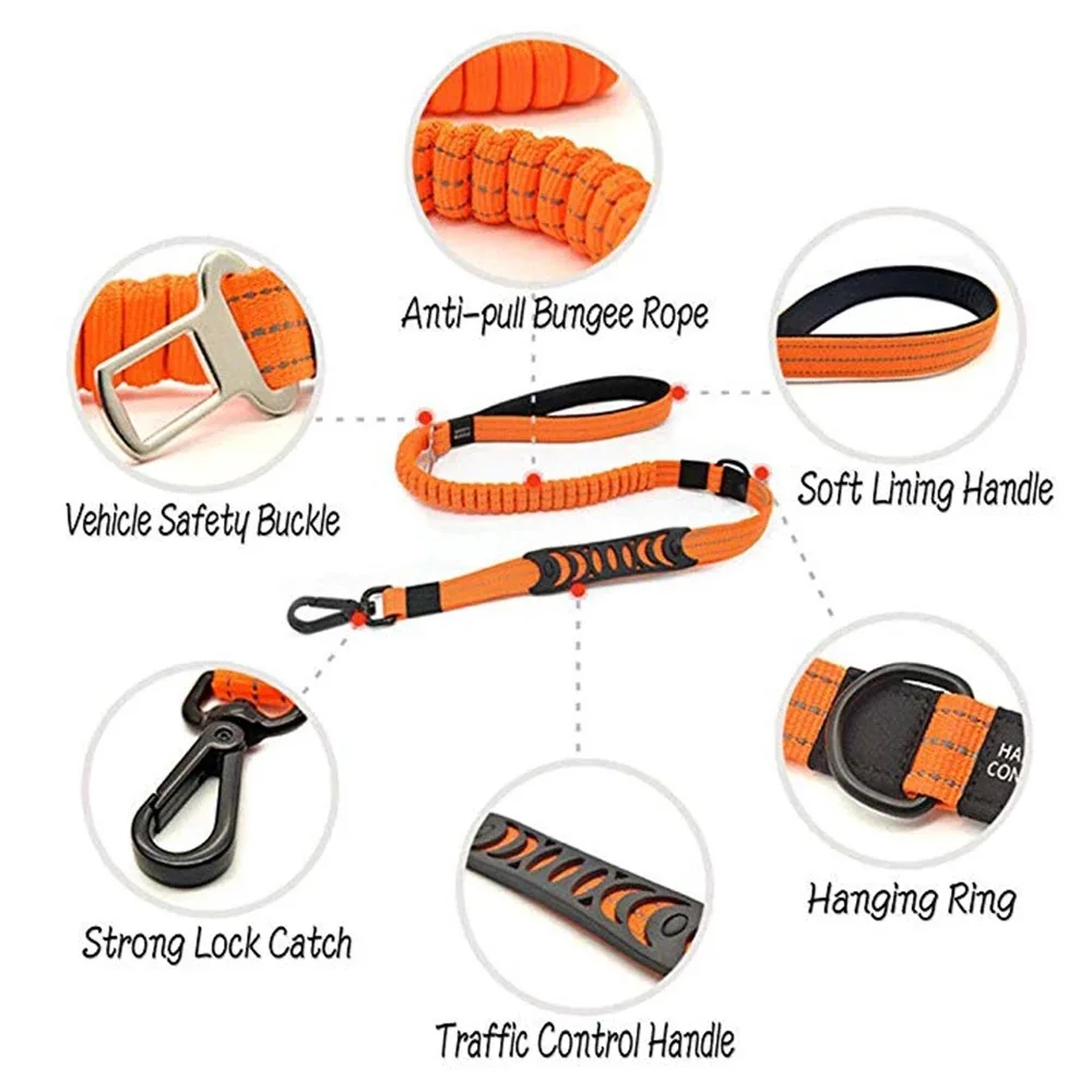 Нейлоновый автомобильный поводок для безопасности собаки Светоотражающие нити буферный поводок для собаки для прогулок и бега с ремнем безопасности для собак для прогулок и походов