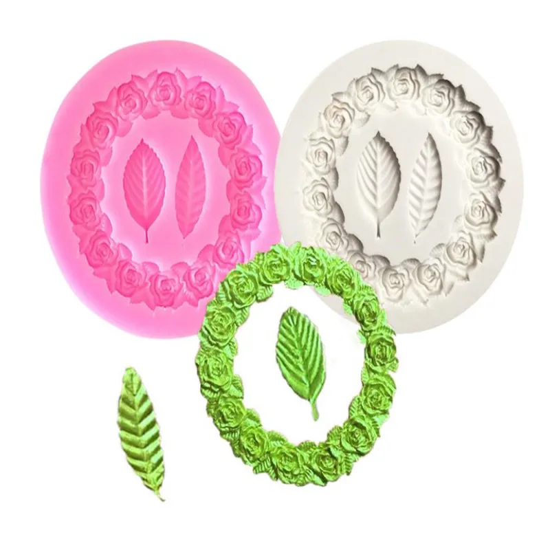 DIY силиконовая форма Роза гирлянда фоторамка помадка Конфеты Форма 3D венок листья силиконовый торт Сахар Форма для выпечки декоративный инструмент