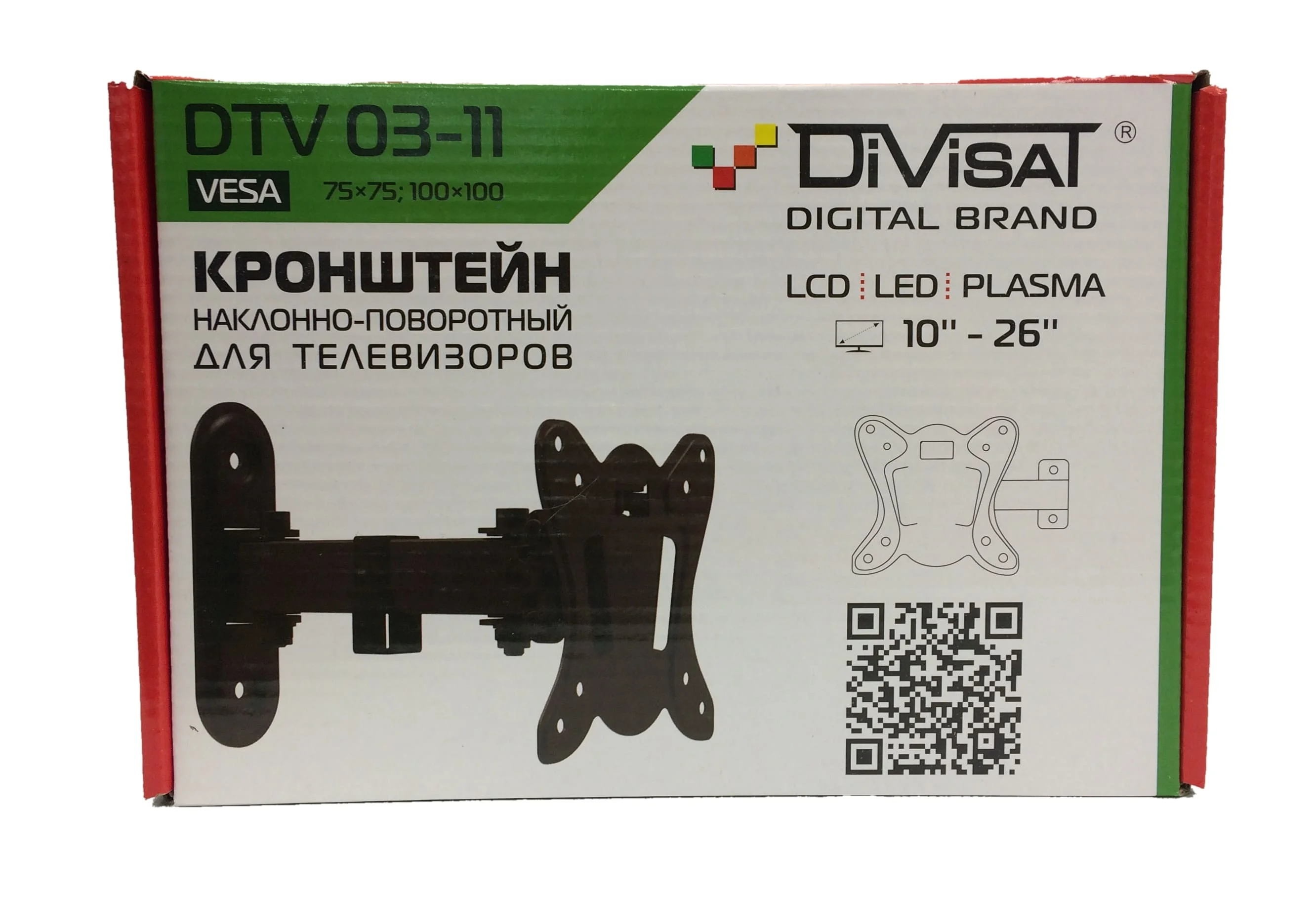 Bracket tilt-swivel description: диагональ-10 "- 26" Нагрузка-20 кгРасстояние wall 65 - 200mm Tilt ± 12 ° Turn ± 90 ° VESA Mount 75 × 75 естьПоддержка Mount VESA 100 × 100 естьЦвет черныйКомплект:-bracket-fastener-instruction