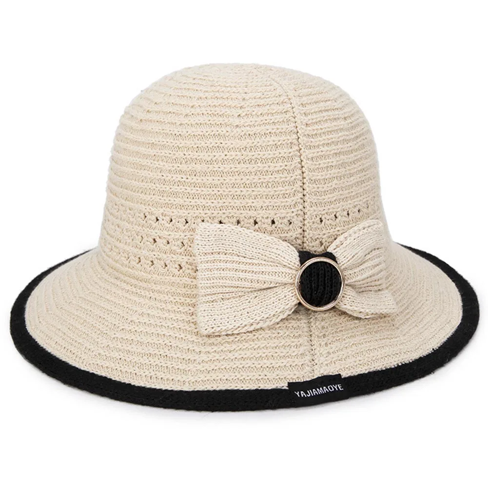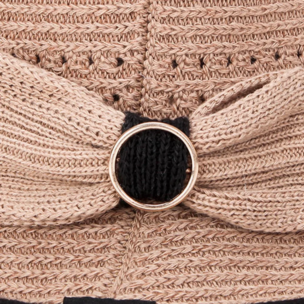 Летние Для женщин, с бантом, вязаные Соломенная Шапка, защищающая от УФ-излучения складной пляж путешествия Кепки