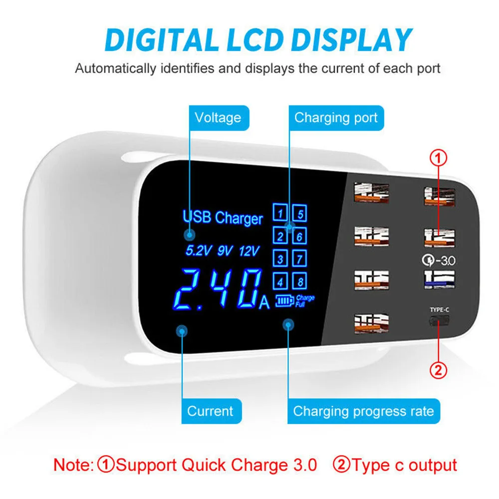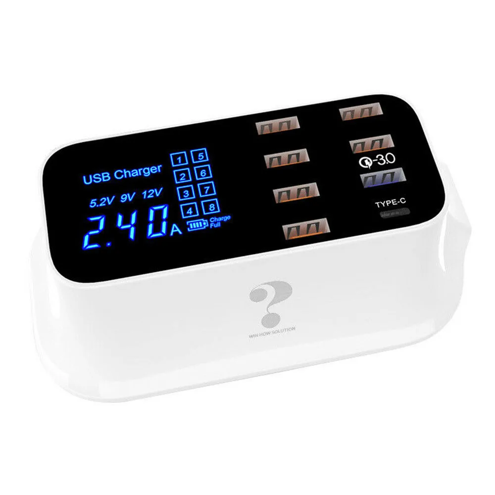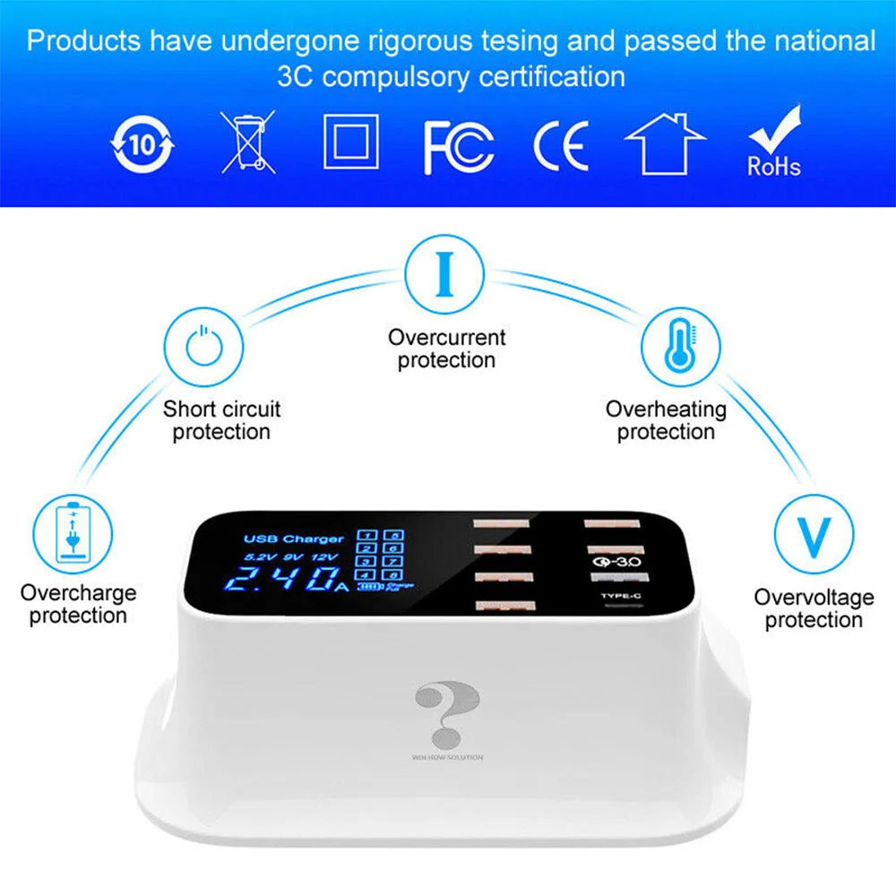 5 В/3 А 8 портов USB зарядная станция быстрое зарядное устройство 3,0 + Тип C адаптер Светодиодный дисплей мульти USB зарядное устройство док-станция для Мобильный телефон планшет