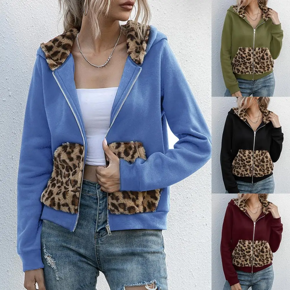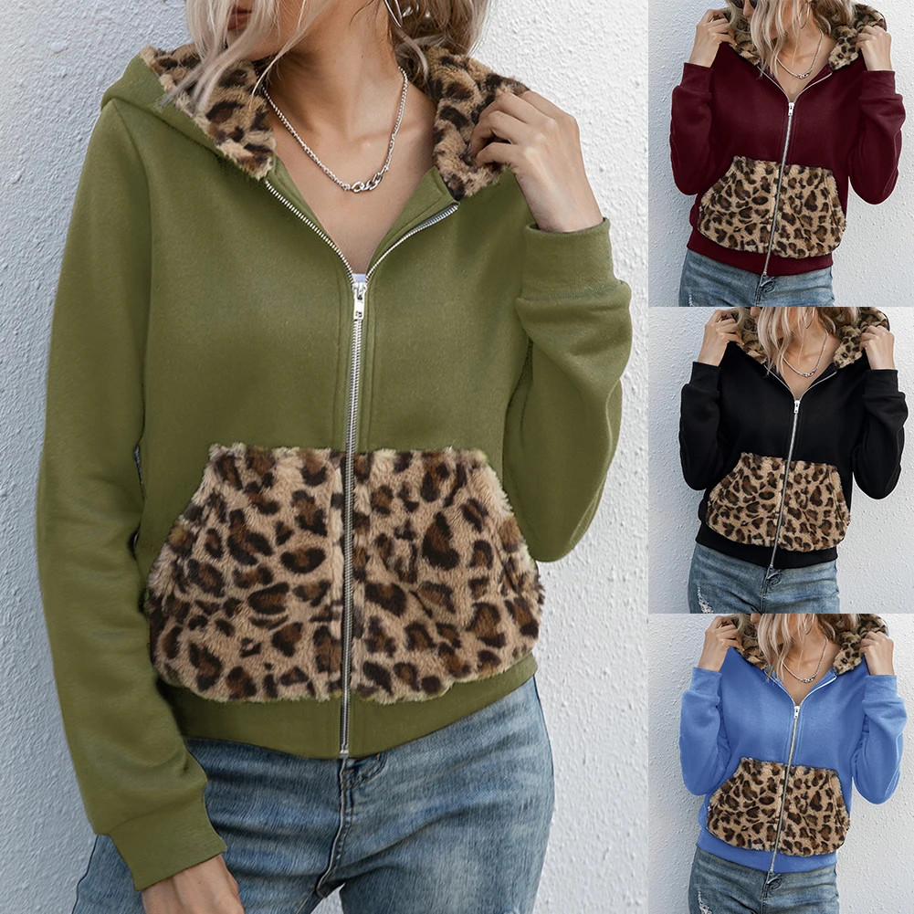 Женская толстовка с капюшоном на молнии с леопардовым принтом, куртка с длинными рукавами, пальто, топы