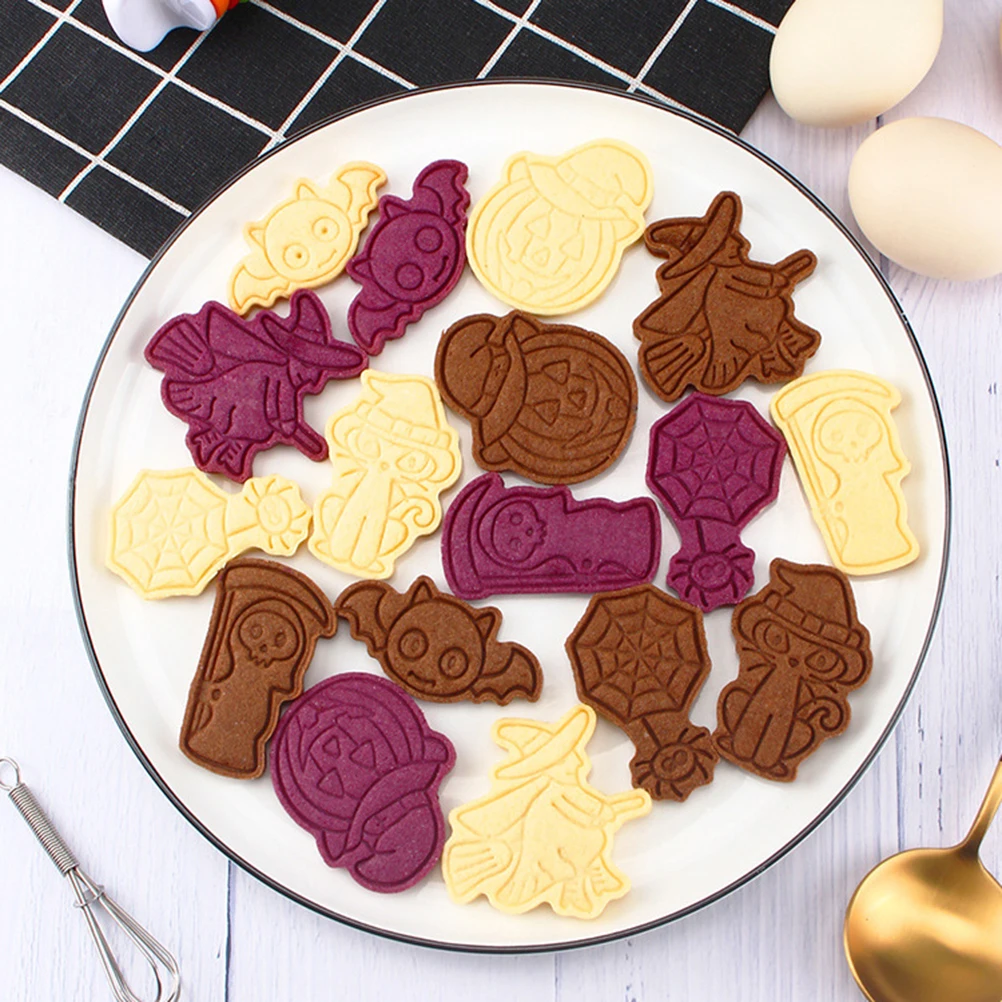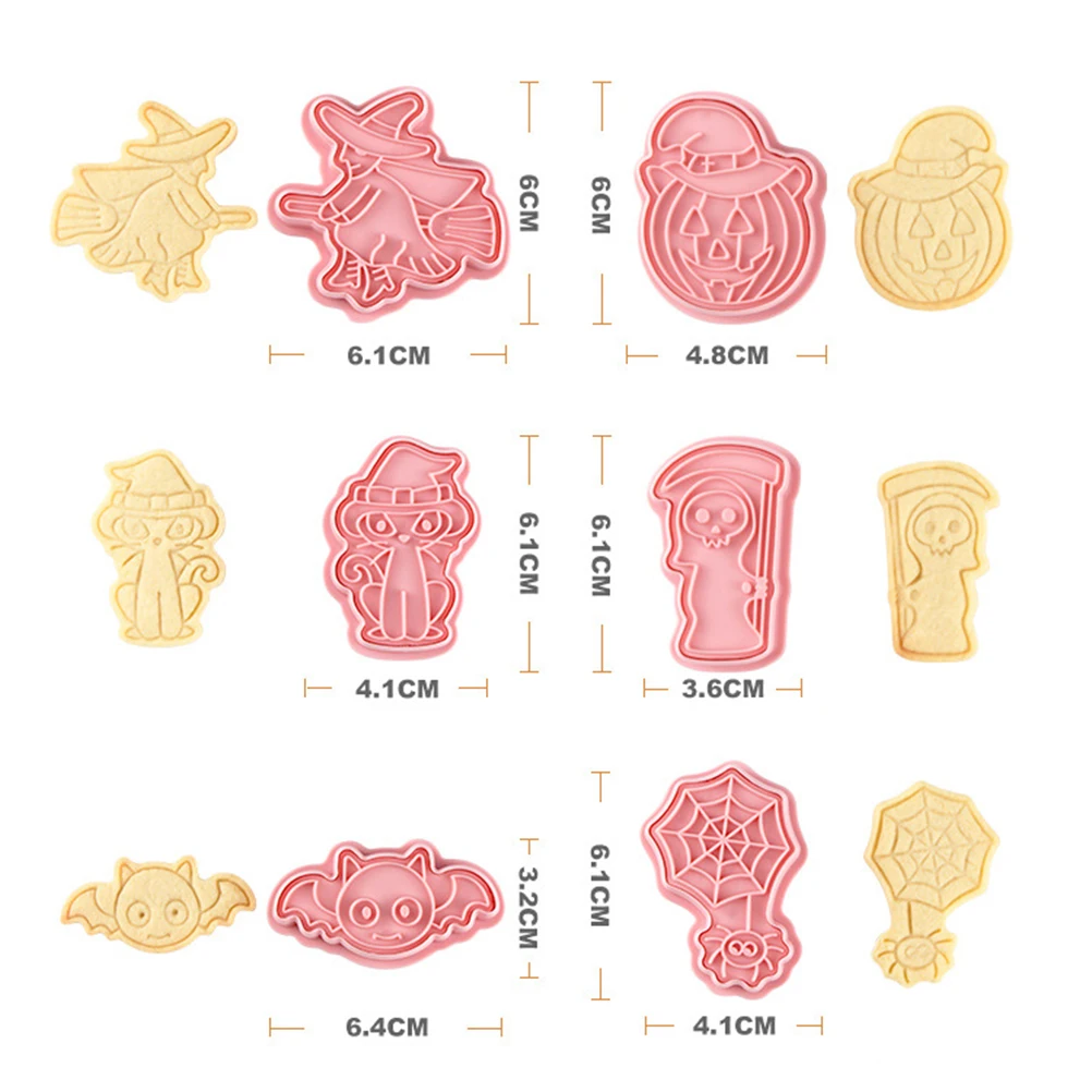 Дизайн Хэллоуина: 6 шт. набор штамповки печенья, элемент стемпера Хэллоуина, обеспечивая изысканное художественное украшение для вашего печенья, включая тыквы, ведьмы, кошек, призраков, пауков и летучих мышей.6 шт./компл. формочки для печенья на Хеллоуин