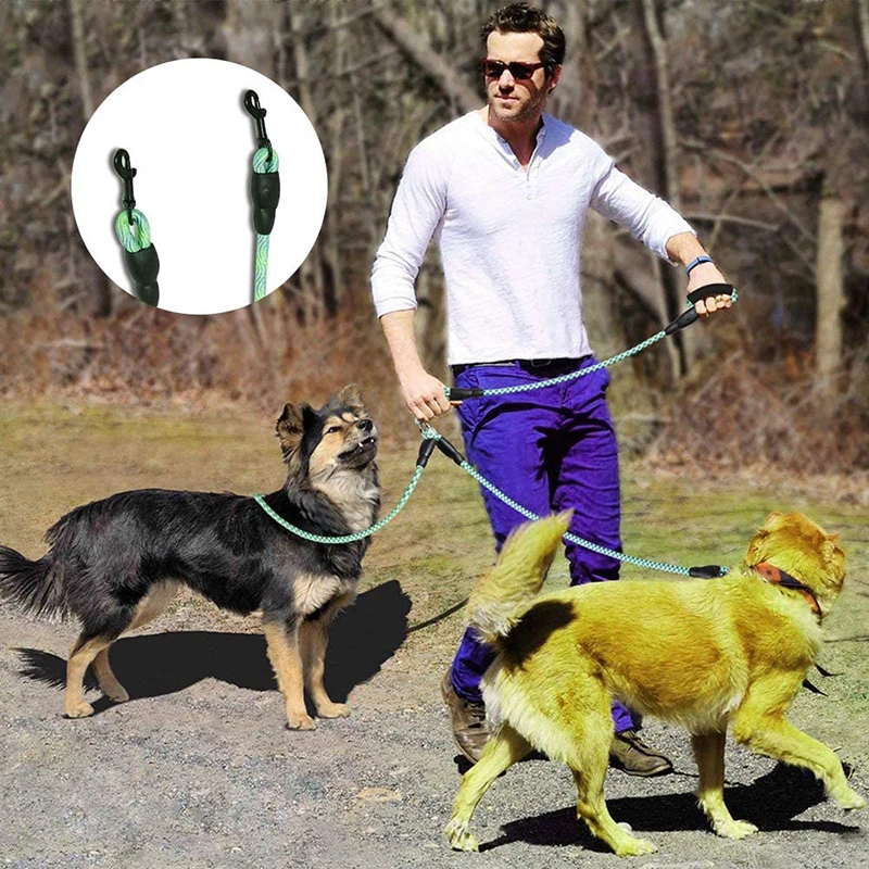 Уникальный дизайн:Этот двойной поводок для собак использует дизайн без запутывания и дизайн пряжки, Вращающейся на 360 °. Его можно автоматически регулировать, когда собака перекрещивается, и собака может свободно перемещаться вокруг вас.